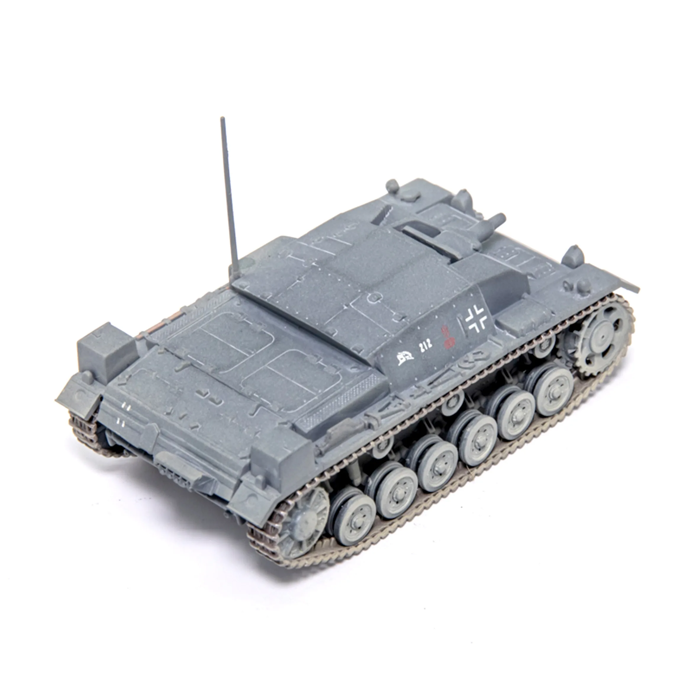 Imagine adding this highly detailed 1:72 scale German Type 3 Tank Model, number 1941, to your collection. Carefully crafted with diecast and plastic materials, it features realistic paintwork with gray tones, detailed panel lines, rivets, and authentic markings, including a white cross insignia and the number “212.” Its precise proportions showcase a WWII-era tank with a low-profile design, angular armor, and realistic tracks supporting multiple road wheels. This model offers a perfect display piece for enthusiasts who appreciate historical accuracy and craftsmanship—bring a piece of history into your collection and enjoy the intricate details that make this model stand out.