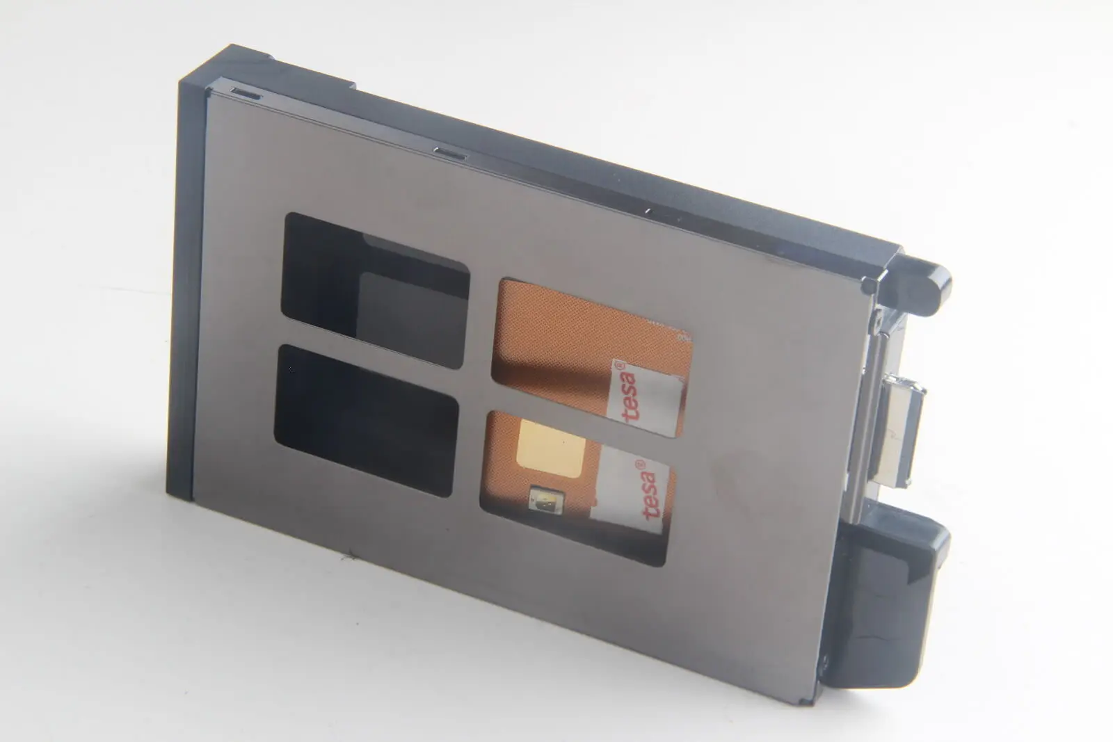Elevate your Getac S410 G1 G2 rugged laptop’s performance with this precisely engineered replacement HDD/SSD caddy. Crafted with a sleek, rectangular profile, it features a durable metallic front panel with a reflective silver finish and three functional cutouts, blending modern style with rugged reliability. The darker sides have a textured matte surface, offering a subtle contrast and enhanced grip. The black plastic edge ensures easy mounting while protecting internal connections. Designed for tool-free, slide-in installation, this caddy simplifies upgrades, letting you easily replace or add drives. Complete with shock-absorbing padding, it safeguards your data from vibrations and shocks, ensuring durability in demanding environments. Seamless compatibility with Getac S410 G1 and G2 models makes this the perfect upgrade component for your rugged laptop.