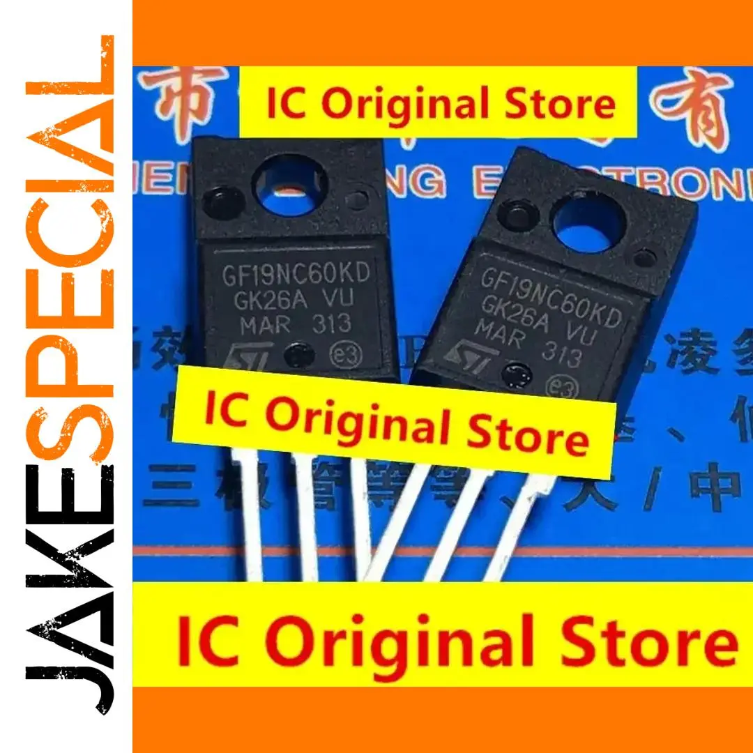 Experience reliable power switching with this set of 10 GF19NC60KD power switch tubes, specifically designed for inverter applications. Encapsulated in a durable TO-220F package, each unit features a sleek, rectangular black design with a flat surface, circular mounting hole near the top, and two small black pins protruding from the bottom for electrical connections. The minimalistic, industrial look emphasizes practicality and ease of use, with clearly printed light-colored model markings “GF19NC60KD”, “GK26A VU”, and “MAR 313” for quick identification. These new, surface-mount components are ideal for demanding electronic systems requiring high-quality, sturdy switch tubes in a compact and functional form.