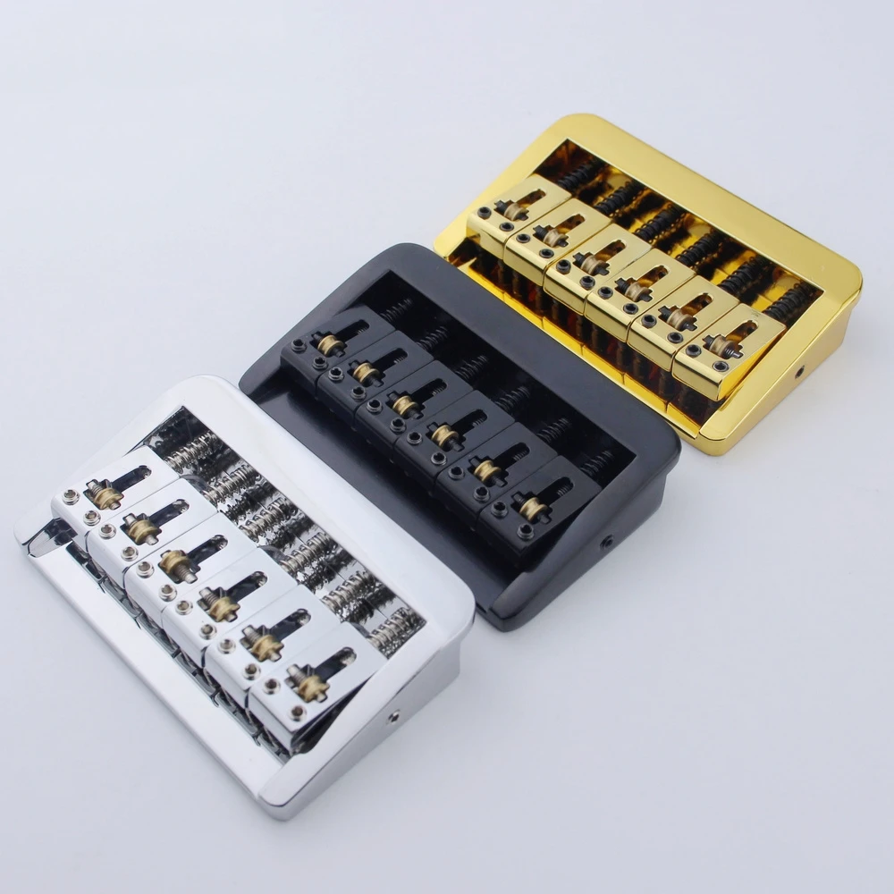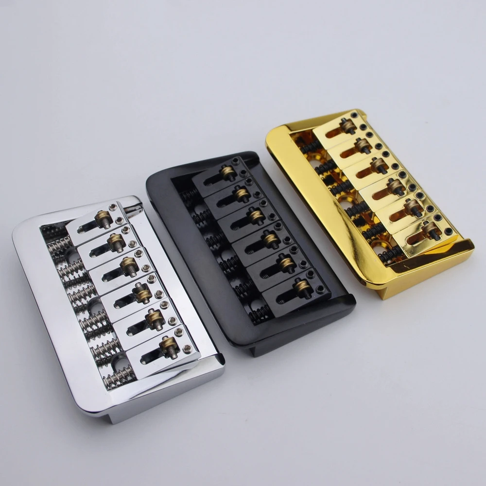 Experience the perfect blend of style and functionality with this adjustable guitar bridge. Designed for 6-string guitars, it offers a precise 10.5mm string spacing that ensures optimal string alignment and improved playability. Crafted from durable metal, it features copper fixed saddles and a zinc block, providing stability and enhanced sound transmission. Available in three eye-catching finishes—luxurious gold, sleek black, and polished chrome—each with a unique aesthetic to complement your guitar’s style. This upgrade offers easy installation, with adjustable saddles and mounting holes for a secure fit. Whether you’re customizing your instrument or replacing a worn component, this bridge enhances tone, tuning stability, and overall performance.