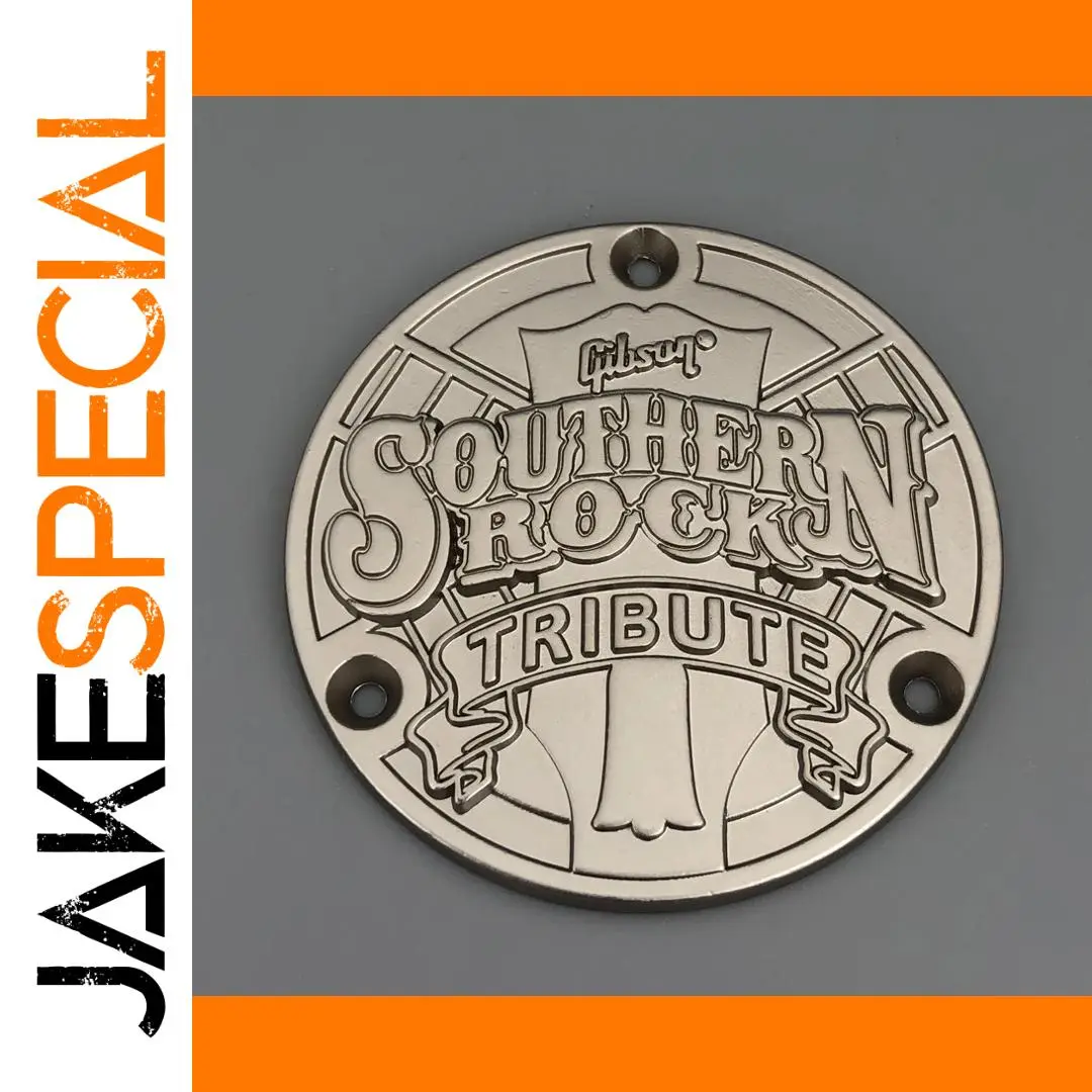 - Intricate engraved details featuring the Gibson logo at the top, with bold inscriptions of “SOUTHERN ROCKIN” and “TRIBUTE,” emphasizing a vintage, rugged aesthetic.