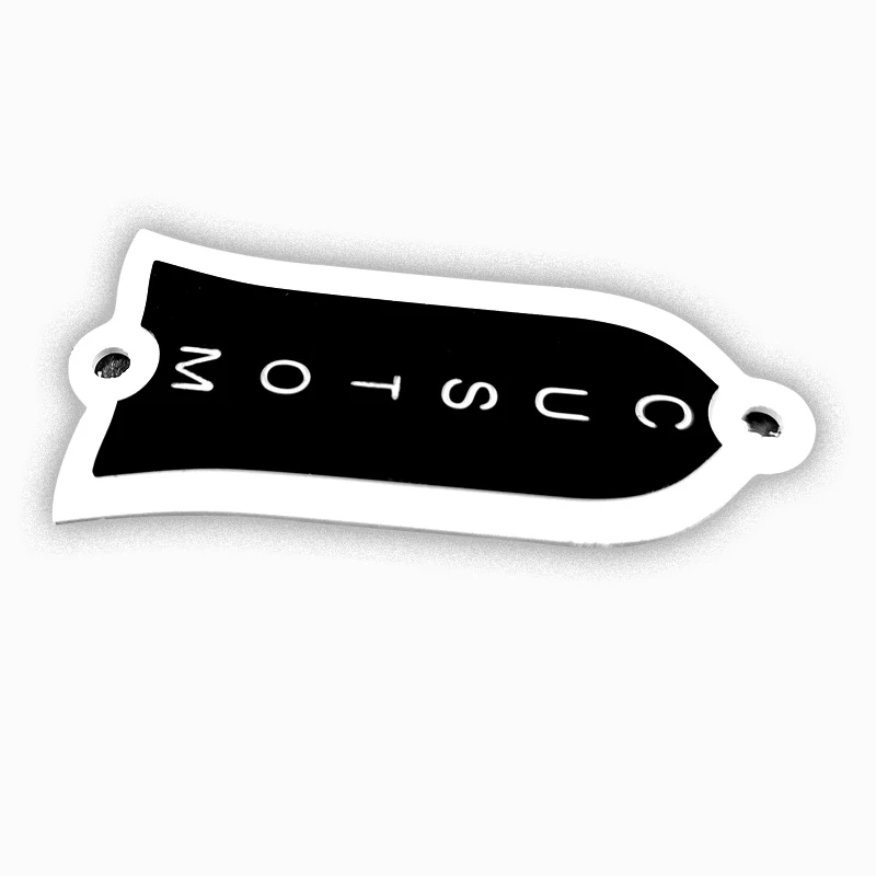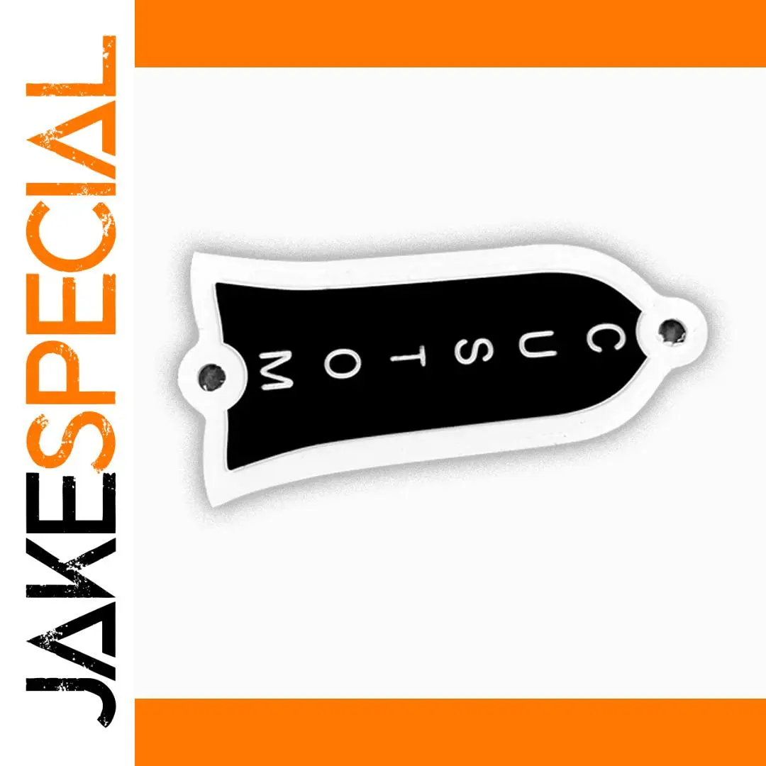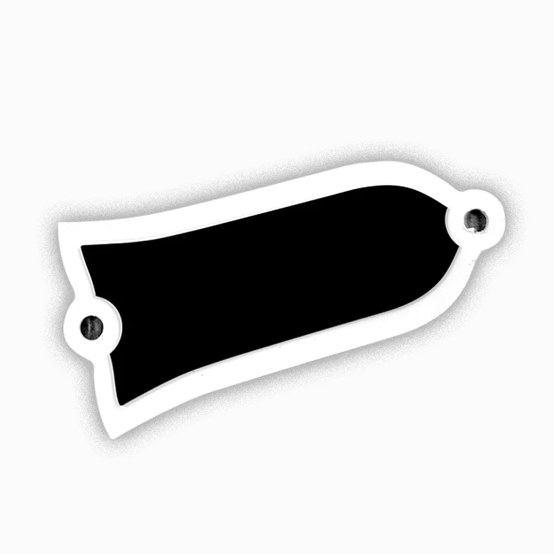 This premium truss rod cover plate is specifically designed for the Gibson Les Paul, enhancing the visual appeal of your guitar. With a sleek black finish and glossy surface, it perfectly balances aesthetics and functionality. The two-ply construction not only provides durability but also ensures that your truss rod remains protected. Vertical white lettering against the black backdrop captures attention while offering easy readability. Its carefully tapered shape ensures a snug fit, making installation a breeze. Whether you're replacing your existing cover or embarking on a DIY project, this piece is a must-have for serious guitar enthusiasts.