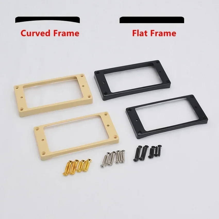 Experience a seamless upgrade with this set of high-quality mounting frames designed specifically for Gibson-style electric guitars. Crafted with precision in Korea, these frames combine durability and style, featuring both curved and flat designs to suit your aesthetic preferences. The sleek metal construction ensures a sturdy fit for your humbucker pickups, enhancing both the sound quality and visual appeal of your guitar. Available in versatile colors—Ivory, Black, Gold, and Nickel—these frames add a touch of elegance without overpowering your instrument’s design. Light and durable at only 9 grams per set, they’re easy to install and built to last, providing a professional finish to your guitar repairs or modifications.
