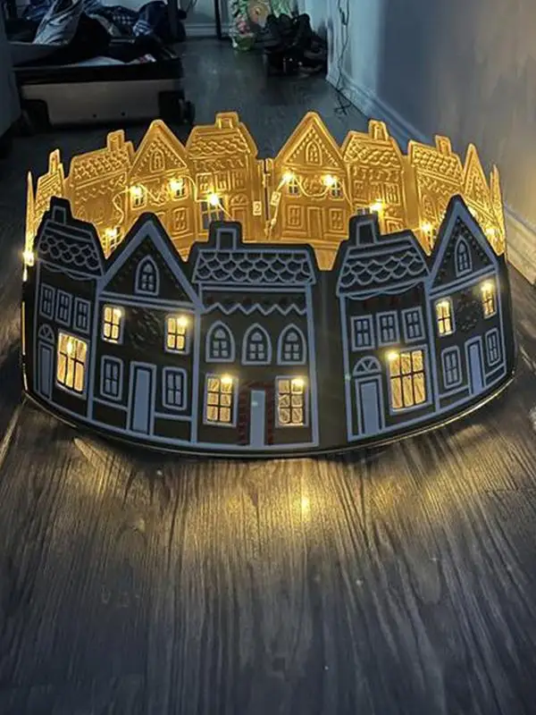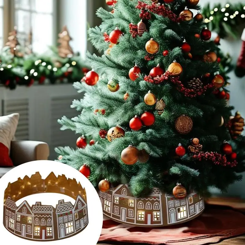 Enhance your festive decor with this charming PVC Christmas Tree Collar, available in diameters of 66 cm and 72 cm, perfect for 26 to 28-inch tall trees. Its whimsical design features a curved panel engraved with a white snowflake pattern and a wire-edged top and bottom for a decorative touch. Made from durable, high-quality materials, it resists peeling paint and deformation, ensuring lasting beauty. The collar includes a built-in button battery light string that illuminates your tree, creating a warm holiday atmosphere. Easy to assemble with snap-together panels, this versatile piece seamlessly combines functionality and festive style for a cozy, inviting Christmas display.