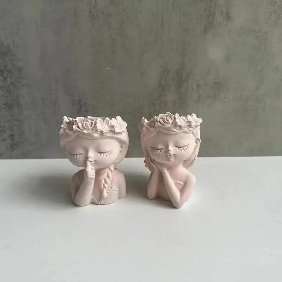 Immerse yourself in creative crafting with this adorable girl doll-shaped silicone mold. Perfect for DIY enthusiasts, it allows you to create charming flower pots, pen holders, and decorative vases using materials like gypsum, cement, clay, or epoxy. Designed for versatility, this mold’s smooth, high-quality silicone ensures durability and flexibility, making your crafting process seamless. Its cute, whimsical design features two serene girls with floral crowns and gentle facial expressions, adding artistic value to your creations. Whether you want charming planters or unique decor pieces, this mold provides endless possibilities to bring your ideas to life. It’s an excellent choice to enhance your artistic hobbies or craft personalized gifts.