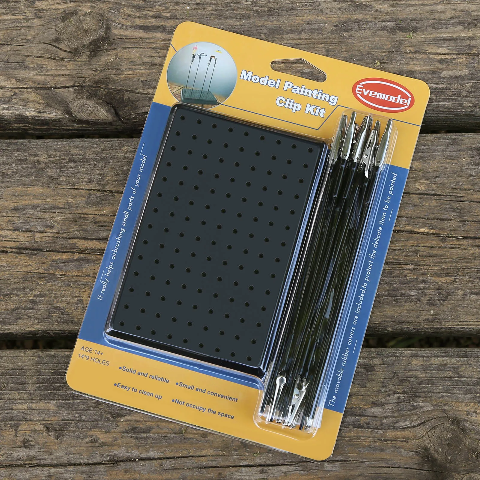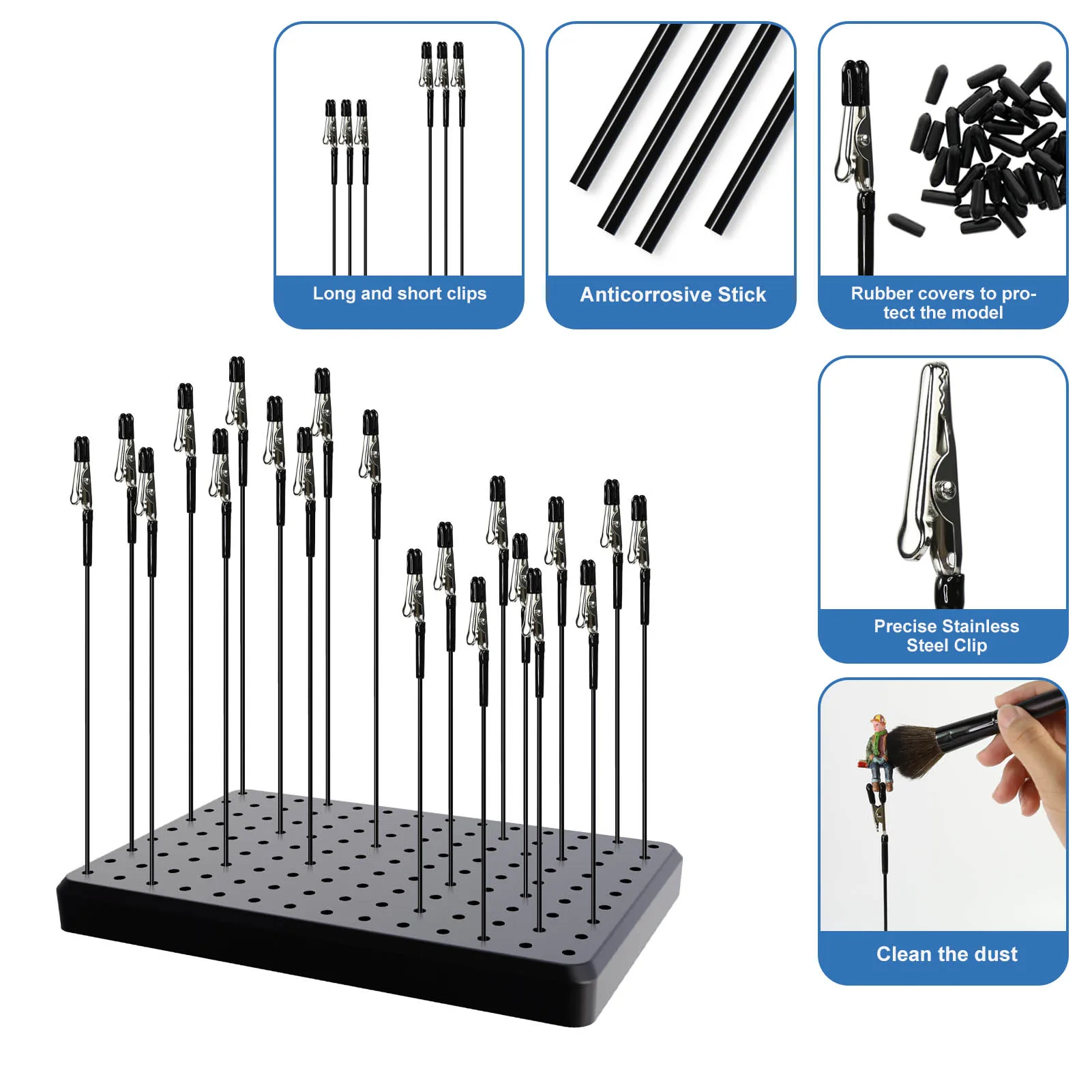 Enhance your detailed painting projects with this versatile model painting stand set, featuring a sturdy 14×9 centimeter base with 14 evenly spaced holes for secure model placement. Equipped with alligator clips capped with colorful rubber covers, it ensures a firm grip on brushes, small parts, or miniature models. The adjustable black metal rods provide flexible positioning, making it ideal for hobbyists and artisans seeking precision and organization. Compatible with various model types, this practical set is designed for users aged 14 and above, offering a clean, modern aesthetic that facilitates smooth and efficient painting or finishing tasks without involving any hazardous chemicals.