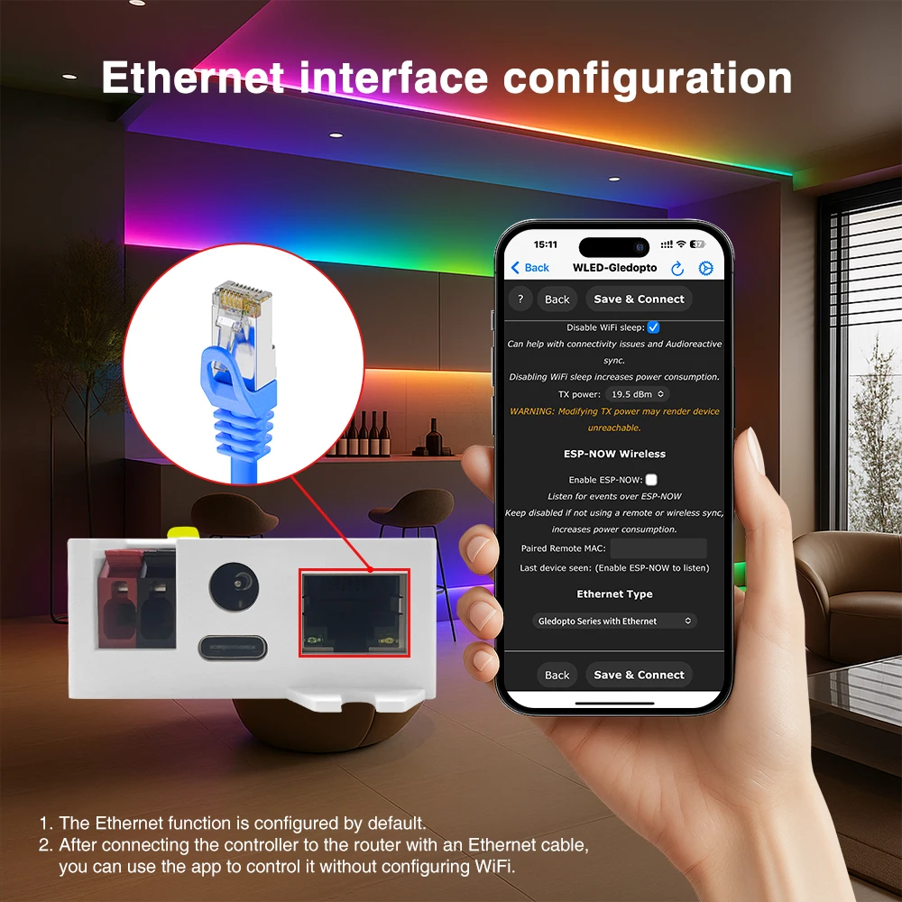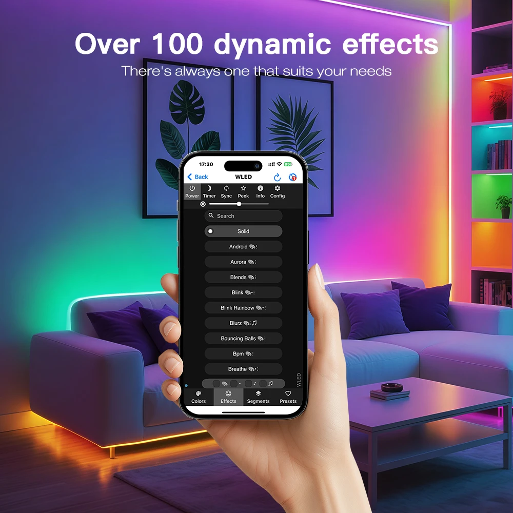 - Provides over 100 dynamic lighting modes, including animations and sound-reactive effects. Supports music sync, DIY GPIO, relay functionality, energy-saving mode, and Type-C power input.