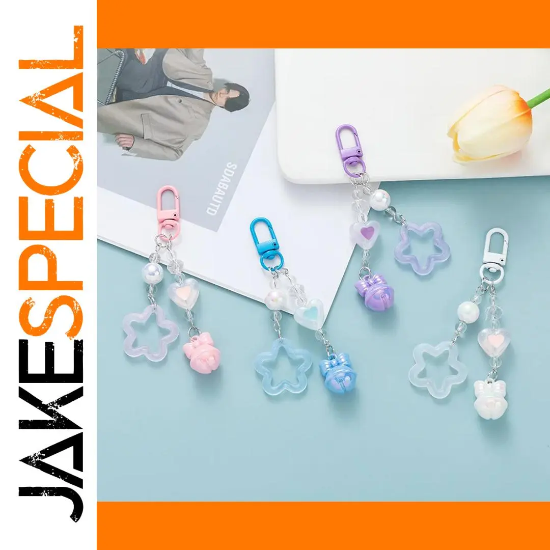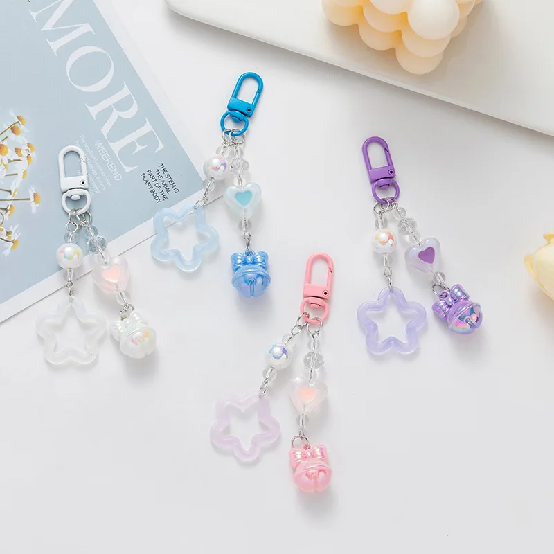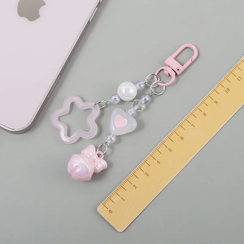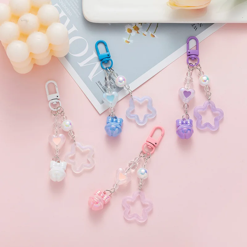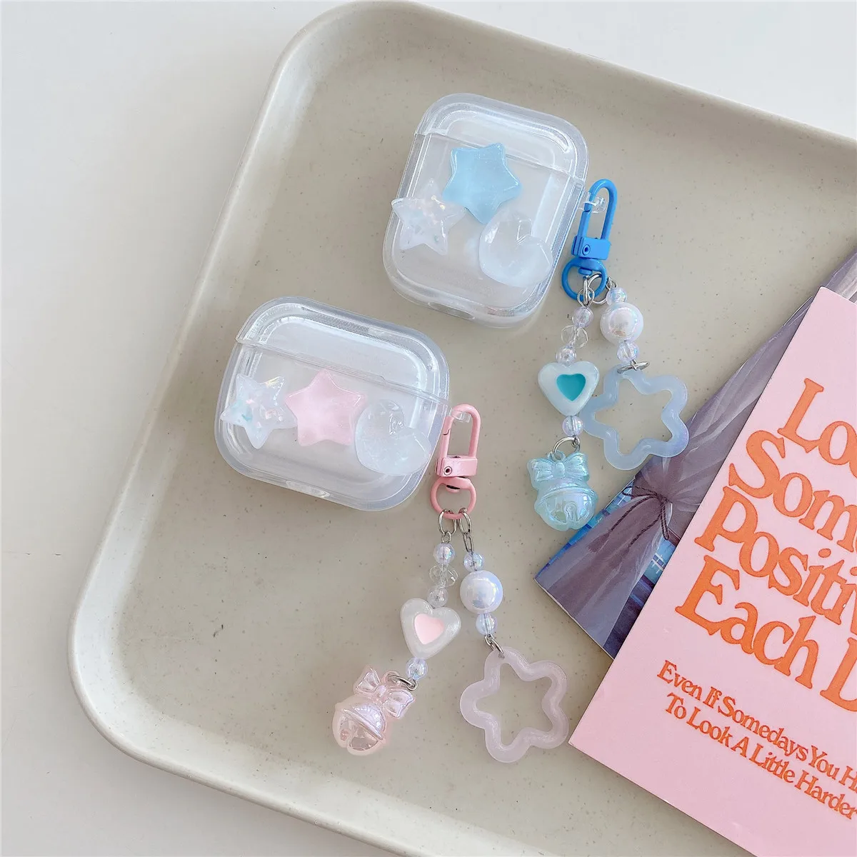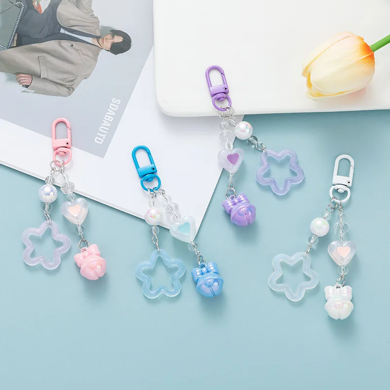 - Adorned with small, clear beads and charming heart or star-shaped accents in pastel shades like pink, white, and blue—adding a cute, playful vibe.