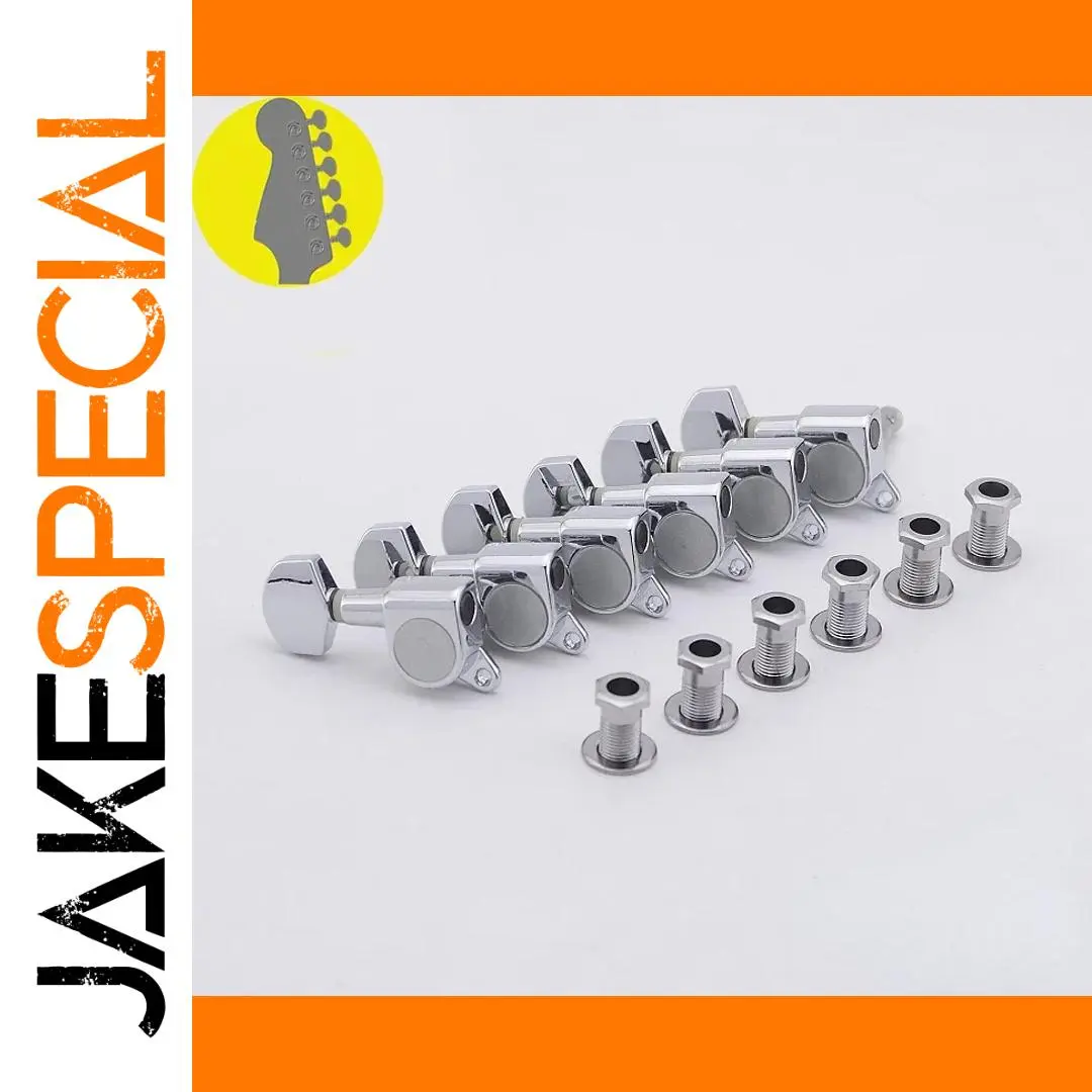 - Includes six in-line left-hand guitar machine heads with a shiny chrome finish for a sleek, modern aesthetic and enhanced durability.