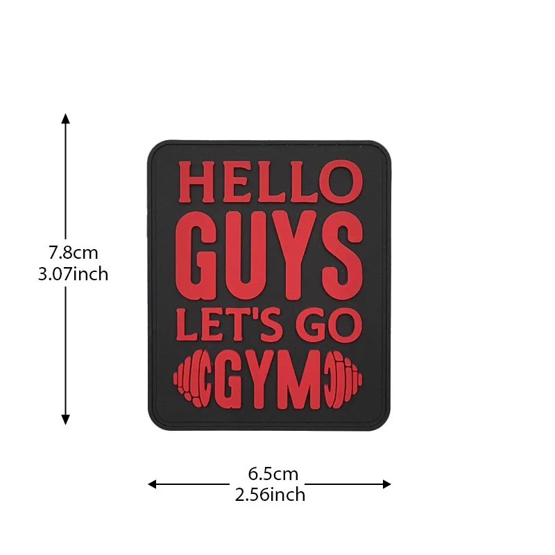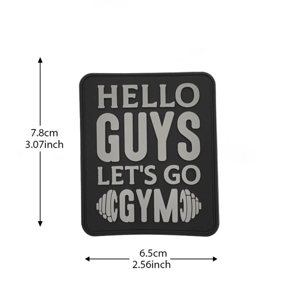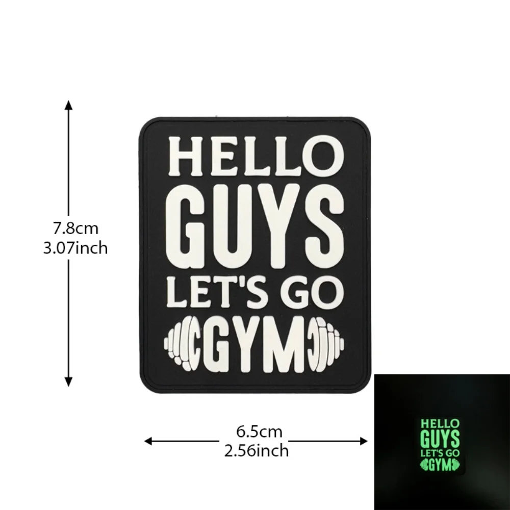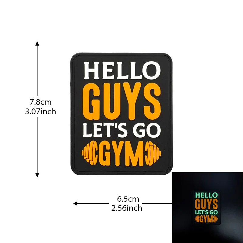 Enhance your gear with this durable unisex motivational gym patch, measuring 2.56″ by 3.07″, crafted from PVC with vibrant embroidered 3D glow-in-the-dark features. Available in antique brass, silver, zinc, and copper, its bold design showcases “HELLO GUYS,” “LET’S GO,” and “GYM” with a detailed barbell graphic, perfect for jackets, backpacks, hats, helmets, or military vests. The hook and loop backing ensures easy attachment, with the option for sewing for added durability. Lightweight and eco-friendly, this patch combines modern style with athletic spirit, making it an ideal accessory for those dedicated to their fitness journey.
