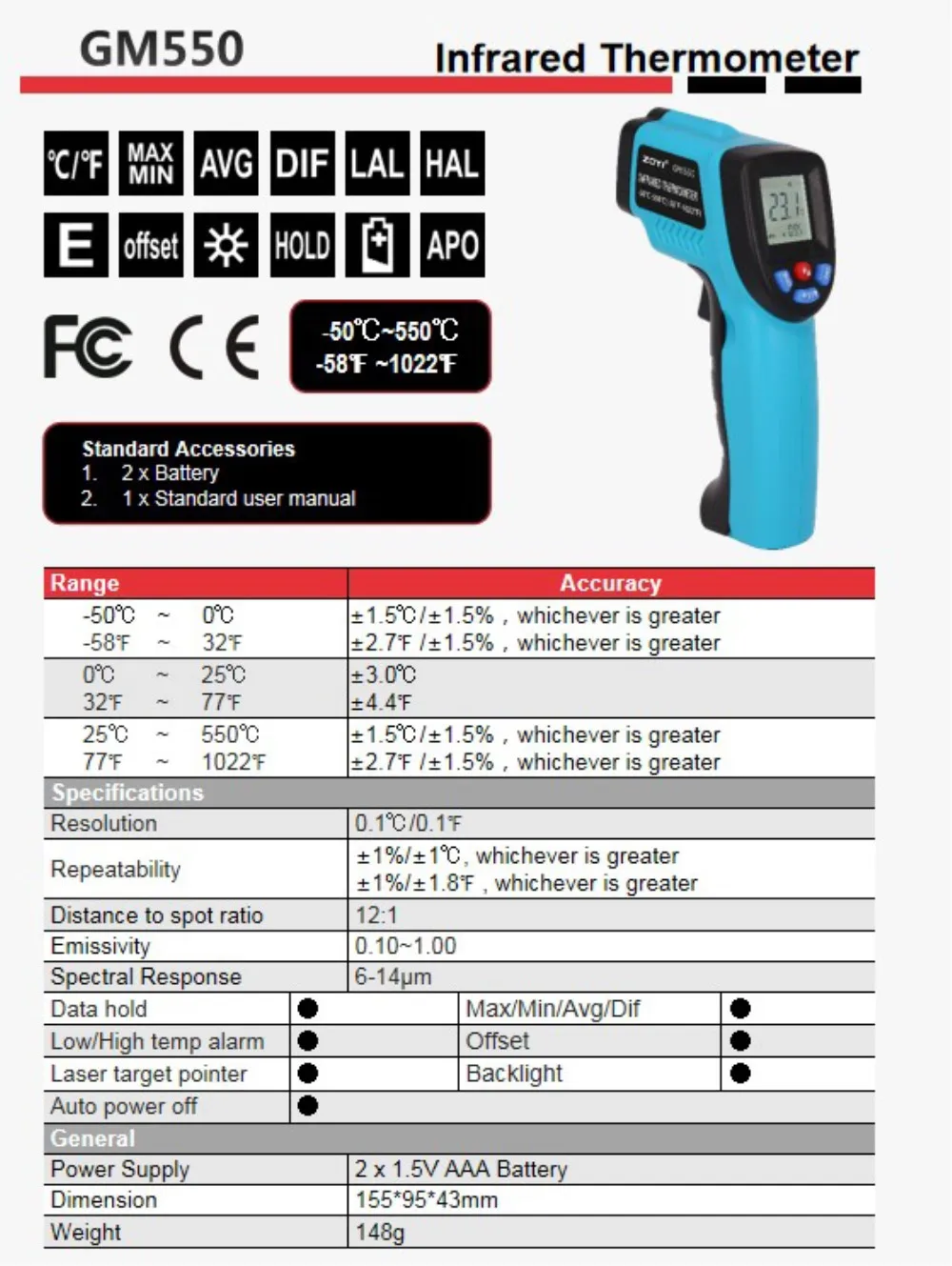 Get yours now—ensure precision with this GM550 infrared thermometer