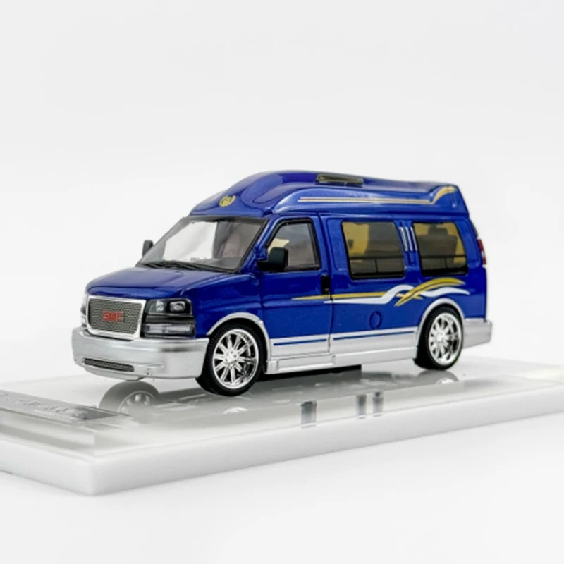 Experience the joy of collecting with this stunning 1:64 scale diecast model of the GMC Savana van. Painted in a vibrant blue with stylish silver accents, this model represents the perfect blend of artistry and craftsmanship. With its boxy shape, realistic proportions, and intricate details, such as a detailed grille and clear windows revealing the interior, this ornament is designed to impress. It’s perfect for display on your shelf or desk, serving as a conversation starter and a nostalgic piece for any automobile enthusiast. Whether keeping it for yourself or gifting it to someone special, this model captures the essence of the beloved GMC Savana.