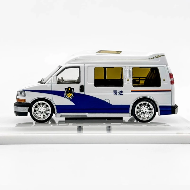 Experience the craftsmanship of this detailed 1/64 scale diecast alloy model of the GMC SAVANA, specifically designed to resemble a police emergency vehicle. The model features a sleek white body accented with bold blue details, capturing an authentic law enforcement appearance. Its finely crafted surfaces include a detailed grille, headlights, side mirrors, and door handles, all meticulously painted to reflect real vehicle components. With police insignia and the word “POLICE” in both English and Chinese characters, it exudes authority and realism. Perfect for passionate collectors and enthusiasts, it enhances any display with its precision and authenticity. Imagine adding this stunning piece to your collection and reliving those police vehicle memories every day.