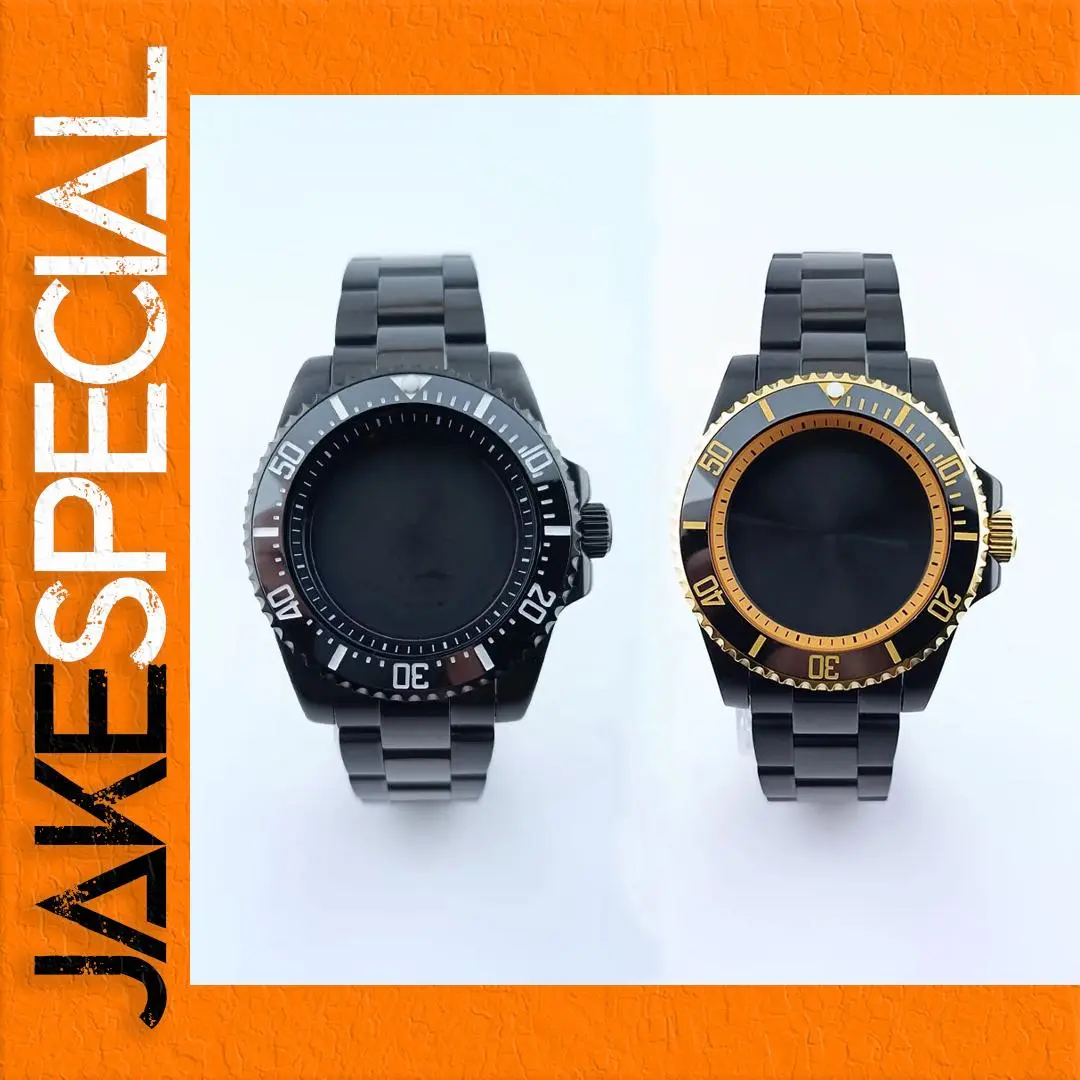 Elevate your watch collection with the robust GMT Black Watch Case, crafted for durability and style. This striking watch case features a matte black finish and a sporty aesthetic, perfect for any watch enthusiast. With a case diameter of 40.5 mm, a thickness of 13.3 mm, and a lug-to-lug distance of 48 mm, it provides a confident fit on your wrist. The unidirectional bezel is complete with a screw-down crown at the 3 o'clock position, enhancing functionality and water resistance. Compatible with a variety of automatic movements, this case is truly versatile, making it an essential addition to your collection.