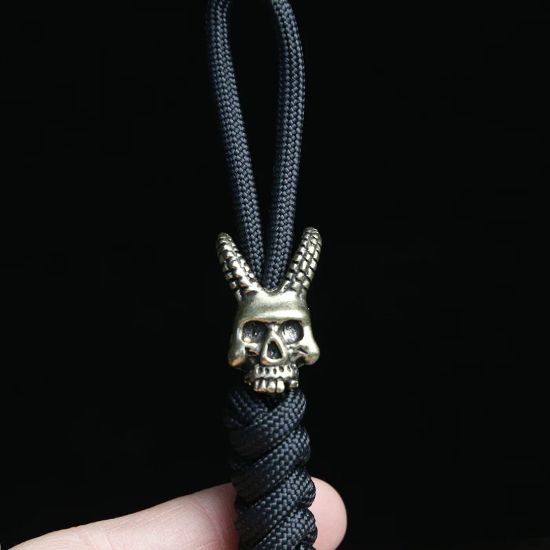 Experience a bold and edgy look with this set of goat horn skull head brass beads, perfect for enhancing your DIY projects. Available in two stunning finishes—retro brass with an antique, weathered charm and white brass that offers a sleek, polished shine—these beads add gothic and tribal flair to any accessory. Each bead features a detailed skull motif with hollowed eyes, nasal cavity, and teeth for a realistic, rugged appearance. The elongated, curved goat horns are textured with small ridges, creating a dynamic visual effect. Small yet impactful, these beads are ideal for crafting punk bracelets, jewelry, woven lanyards, charms, or decorative paracord accessories, giving your creations a personalized and distinctive touch.