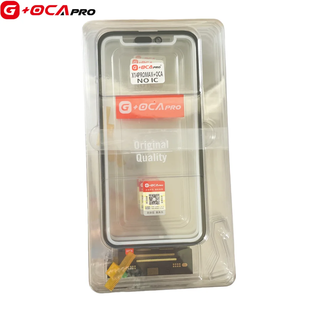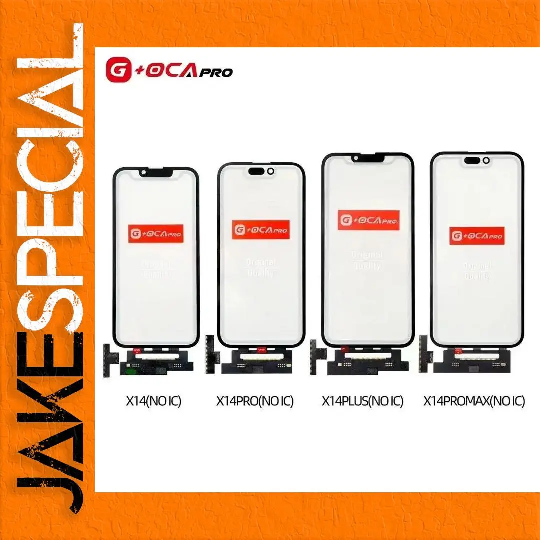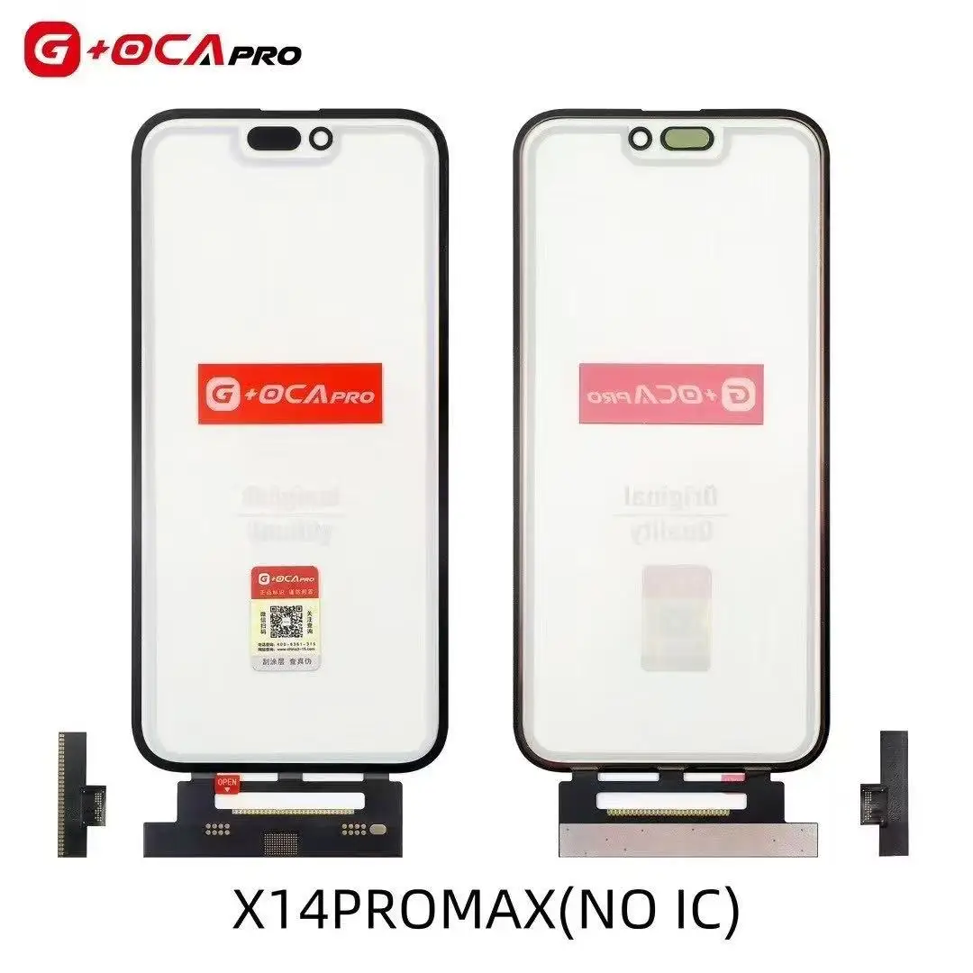 Enhance your iPhone 14 experience with these premium touch screen outer lens panels by G+ OCAPRO, designed for the iPhone 14 series, including the models 14 PLUS, 14 PRO, and 14 PRO MAX. Each lens features a sleek, glossy finish with a black border that reduces light reflection, ensuring a visually appealing display. Operating without an integrated circuit (IC) sensor, these panels utilize Optically Clear Adhesive (OCA) for seamless application. Clearly labeled for each model variant as “NO IC,” these panels promise authentic quality and durability, elevating your device’s functionality and style effortlessly.