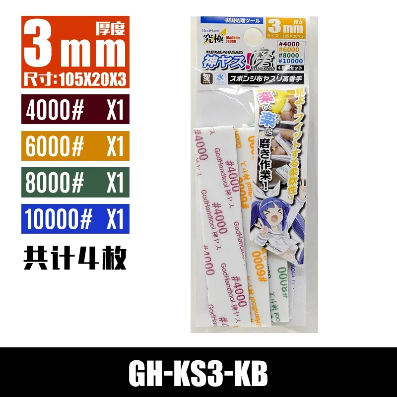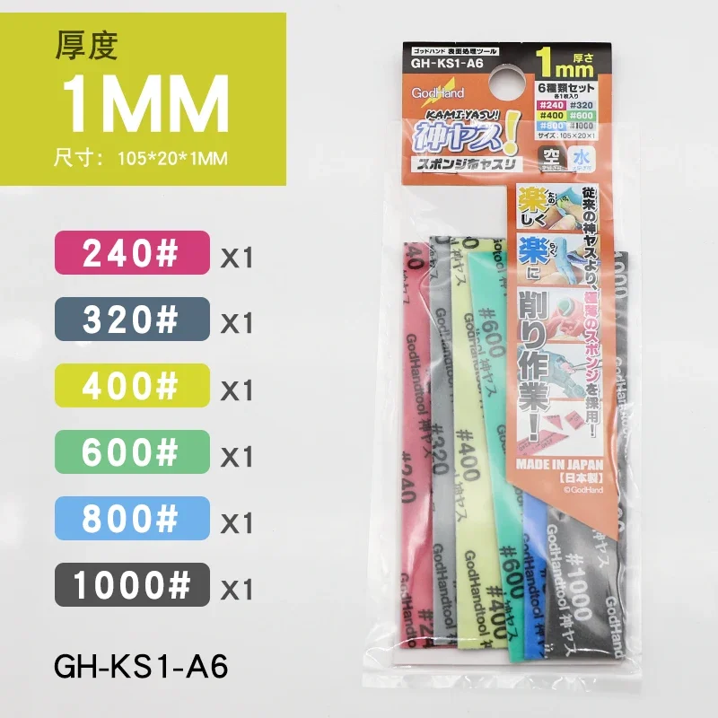 Experience precise finishing with the this GodHand GH-KS1 series sanding sponges, designed for versatile polishing and sanding tasks. Available in 1mm, 2mm, 3mm, and 5mm thick options, these sponges are perfect for detailed crafts, professional projects, or home DIY handiwork. Their 105mm x 20mm size offers excellent control and maneuverability, enabling you to achieve smooth, high-quality surfaces efficiently. Crafted with high-quality materials, these sanding sponges deliver consistent results across different surfaces and applications. Whether you’re polishing intricate models or smoothing out rough edges, this GodHand GH-KS1 series will become your trusted companion. Easy to handle and durable, they make every detailed project a success, elevating your craftsmanship to new levels.