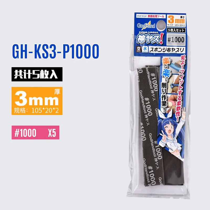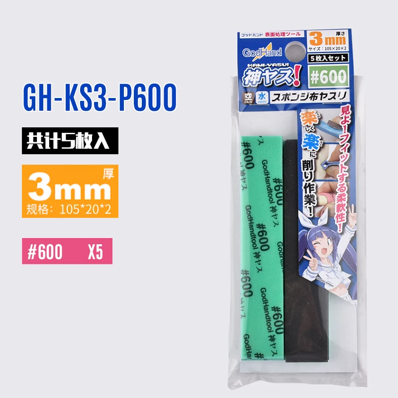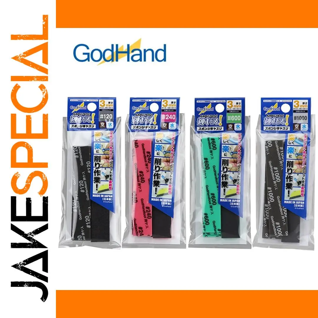 Introducing the GodHand GH-KS3-P120-P1000 Kamiyasu Sanding Sponge Stick set, featuring five high-quality sponge sticks designed specifically for meticulous sanding and polishing. Each stick measures 105mm x 20mm with a thickness of 3mm, making them perfect for detailed model making and DIY projects. The set includes a #120 black sponge, a #240 pink sponge, a #600 light green sponge, and a #1000 black sponge, each providing different grit levels for various finishes. Experience superior flexibility and effectiveness in your crafting tasks and elevate your projects to a professional level with these essential tools.