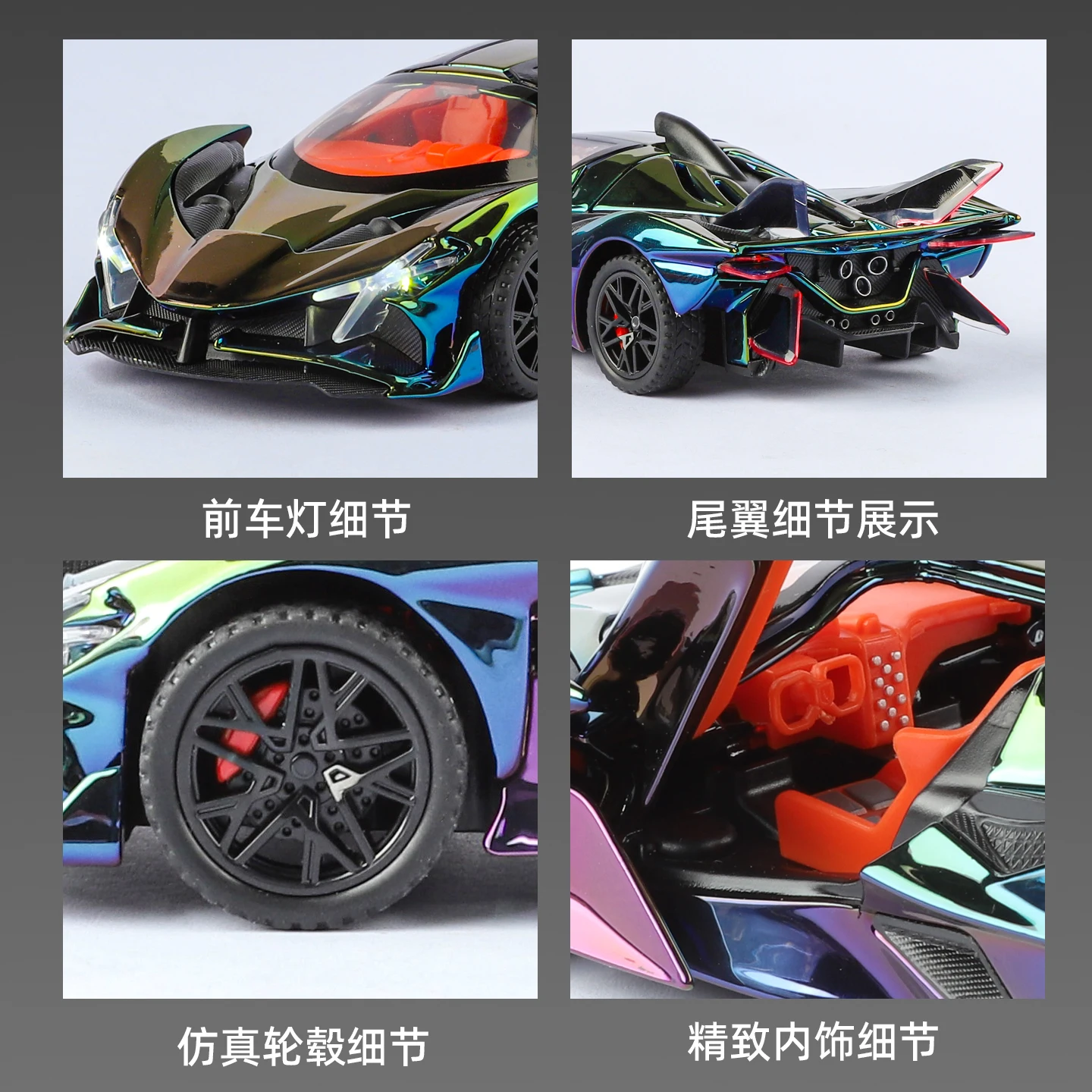 - Technical specifications include alloy metal chassis with electroplated finish, scaled at 1:32, with color options to match your aesthetic preferences.