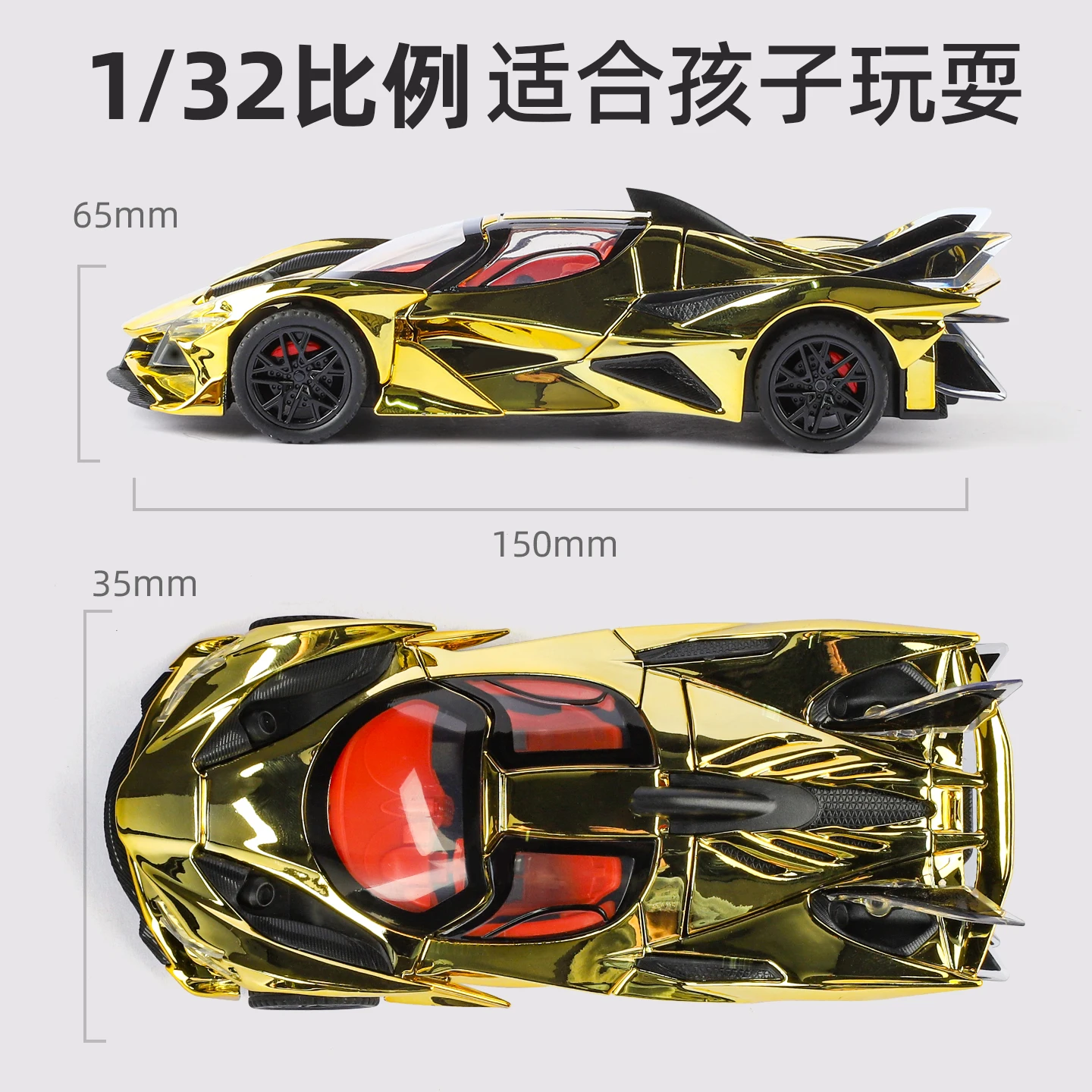 Imagine showcasing this captivating 1:32 scale diecast model car in your collection or workspace. Its metallic gold finish reflects light beautifully, highlighting the sleek, aerodynamic contours that convey speed and luxury. The detailed craftsmanship creates a miniature masterpiece with aggressive lines, sharp curves, and realistic vents, making it a standout display piece. The transparent tinted windows reveal subtle interior details, adding a touch of authenticity. Perfect for enthusiasts and collectors aged 14 and above, this model combines aesthetic appeal with high-quality materials, making it a durable and eye-catching decoration. Whether you want it for your desk, shelf, or display cabinet, this model embodies style and craftsmanship that will impress everyone.