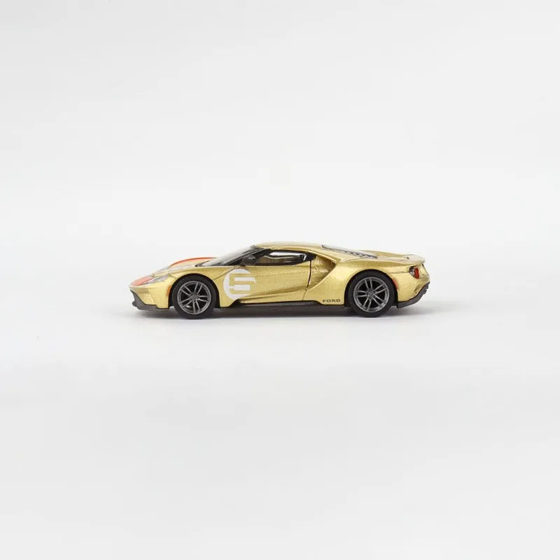 Experience the thrill of high-speed racing with this meticulously crafted gold diecast model of the GT Holman Moody Heritage 5. Measuring 1:64 scale, this alloy collectible exudes sophistication with its glossy finish, sleek aerodynamic lines, and intricate vent details. The contrasting black accents and silver-rimmed black wheels enhance its sporty, aggressive stance. Perfect for display or gifting, this model captures the essence of a high-performance sports car, making it an eye-catching addition to any collection. Its refined craftsmanship brings a real racing spirit to life, allowing you to enjoy a piece of automotive heritage with precision detailing. Whether for connoisseurs or enthusiasts, this model promises admiration and elevates your decor with dynamic style.