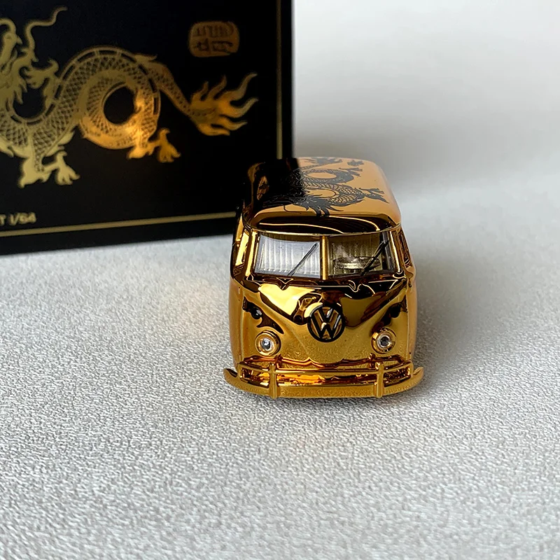 - Luxurious gold-colored finish with detailed black graphic motifs highlighting the vintage design of the 1960 VW Bus.