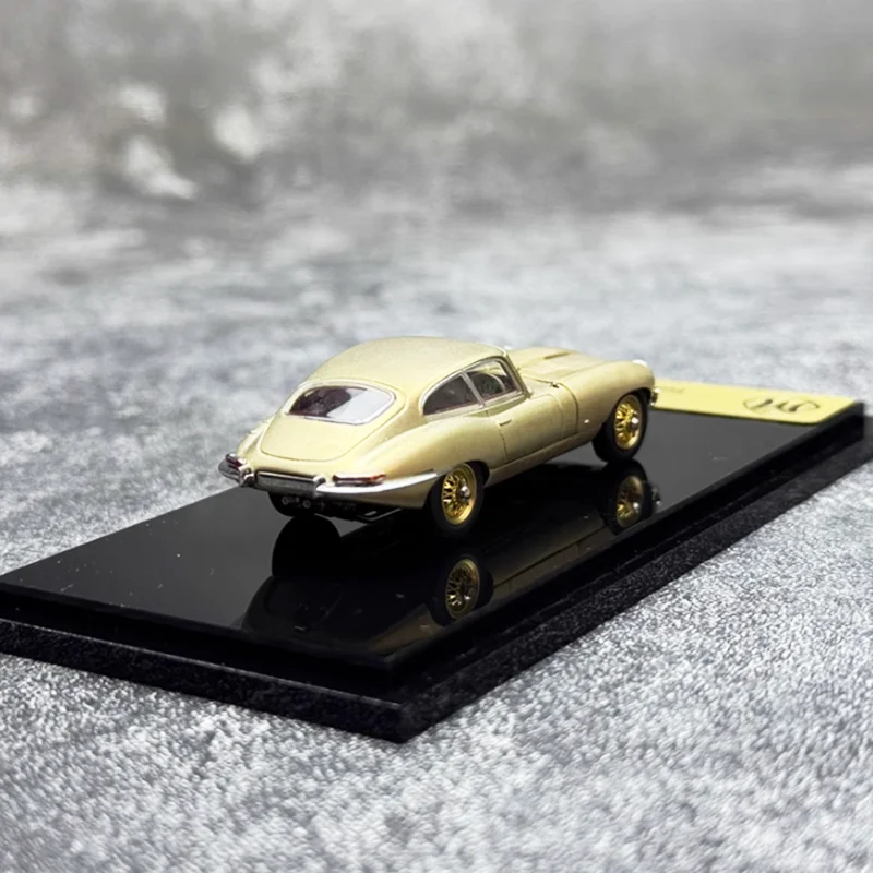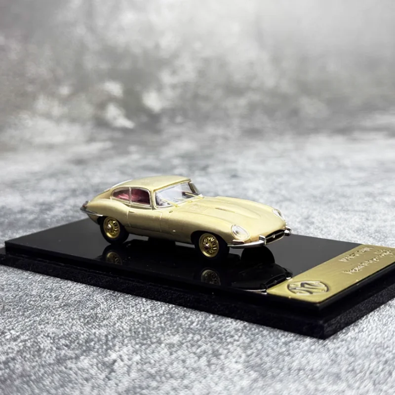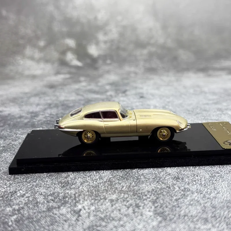 Immerse yourself in vintage luxury with this finely crafted 1:64 scale alloy replica of the iconic 1961 Jaguar E-Type. Meticulously finished in glossy metallic gold, the model captures the sleek curves and flowing lines characteristic of this classic vehicle. Its realistic details include textured black tires, proportionate front grille, headlights, and side mirrors, all designed to evoke the genuine elegance of the original. The dark reddish tinted windows provide a striking contrast against the gleaming body, enhancing its retro charm. Ideal for collectors and enthusiasts, this diecast model offers an authentic display piece that embodies timeless automotive artistry. Perfect to showcase on your shelf or desk, it embodies nostalgic craftsmanship and refined detailing.