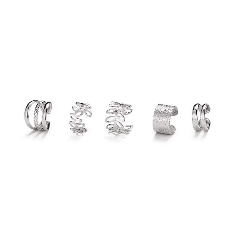 - Includes five clip-on earrings, each designed with geometric, leaf, and double stud patterns for a dynamic, layered look suitable for various styles and occasions.