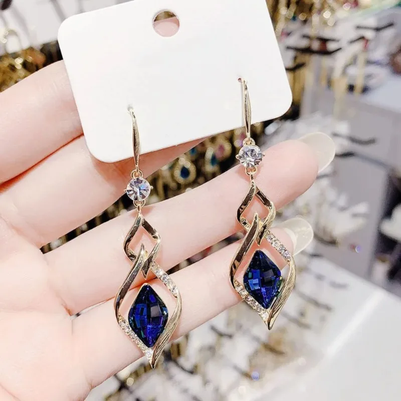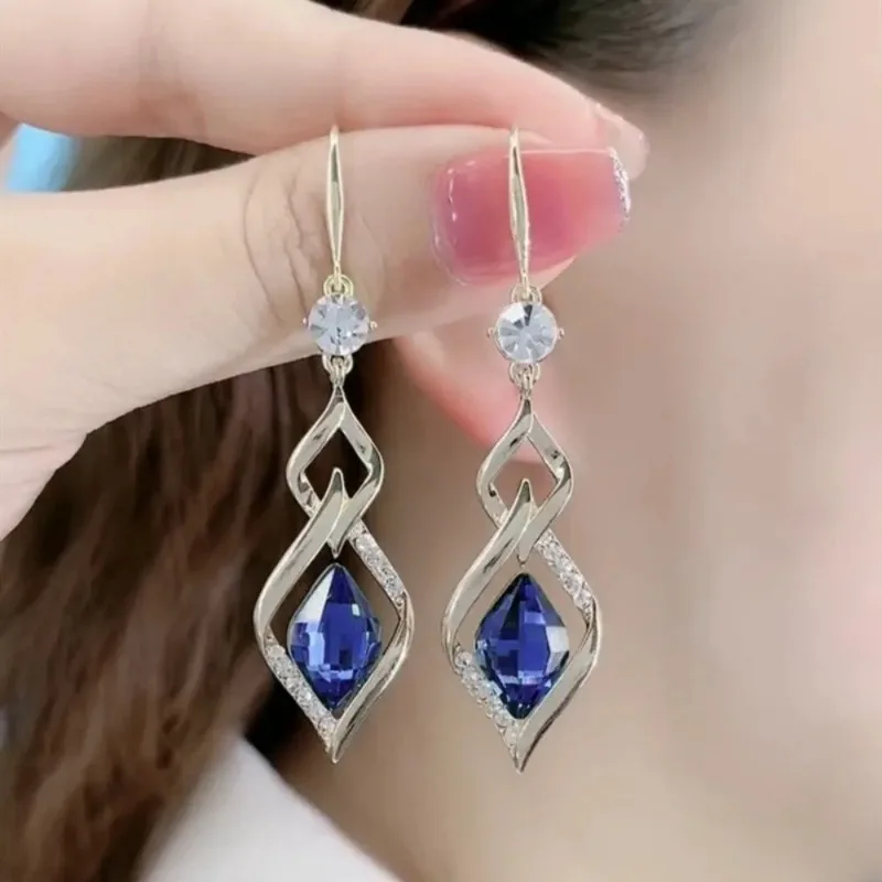 Enhance your style with these elegant drop earrings featuring a geometric shape pattern, crafted from zinc alloy with a polished gold-tone finish. Each earring displays a stunning, faceted marquise-shaped blue zircon gemstone, accented by white zircon inlays that catch the light beautifully. Available in gold and silver metallic colors, they are lightweight, comfortable, and perfect for adding sophisticated sparkle to parties, engagements, weddings, anniversaries, or daily wear. Designed for women and girls, these trendy accessories combine modern artistry with fine craftsmanship, making them an ideal choice for elevating your look on any special occasion or everyday outing.