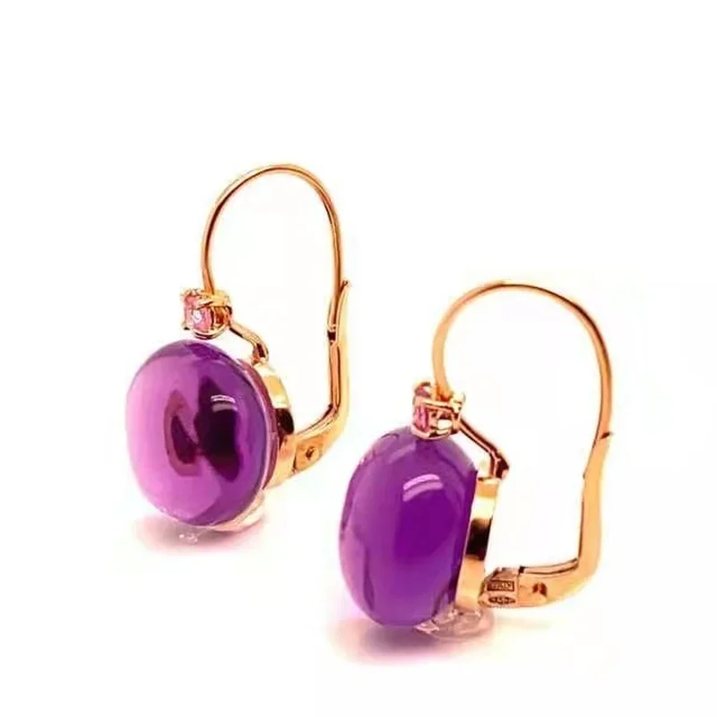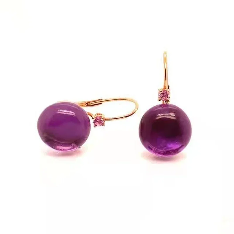 - Dangling below, a large round purple bead measuring approximately 1-2 cm, glossy and reflective, designed to catch light and add vibrancy to your look.