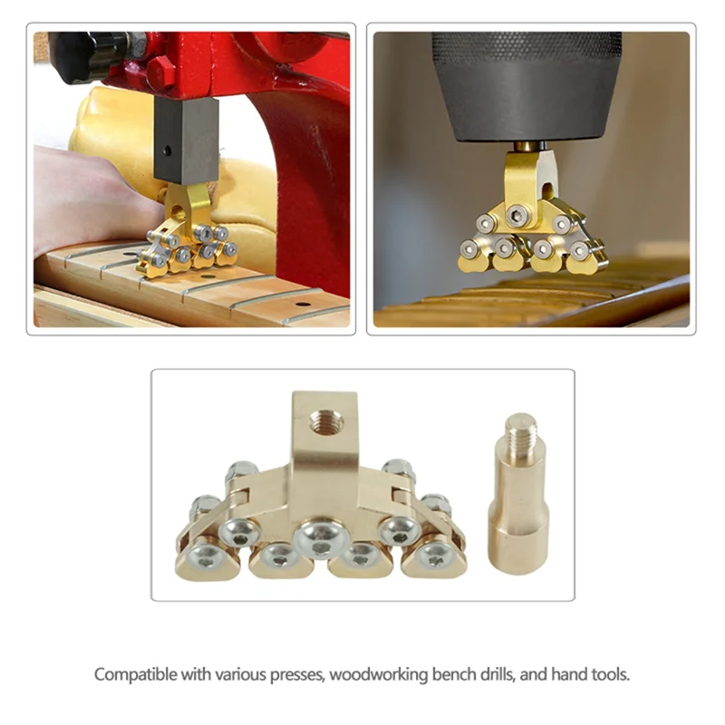 Elevate your luthier skills with the XFDZ Guitar Fractal Fret Press Tool, beautifully crafted from durable brass with a stunning gold finish. This essential tool features a robust metal arm and multiple rollers, expertly designed to accommodate various fretboard curvatures for precise installations. Imagine effortlessly applying the gentle pressure needed for flawless fret pressing, while the anti-slip grooves ensure a stable grip without damaging your guitar. Compact and user-friendly, this tool is perfect for both professional luthiers and passionate DIY enthusiasts ready to enhance your guitar maintenance and repair projects. Transform your guitar work experience today!