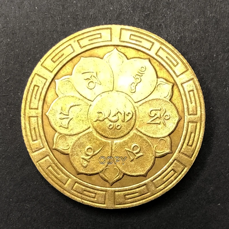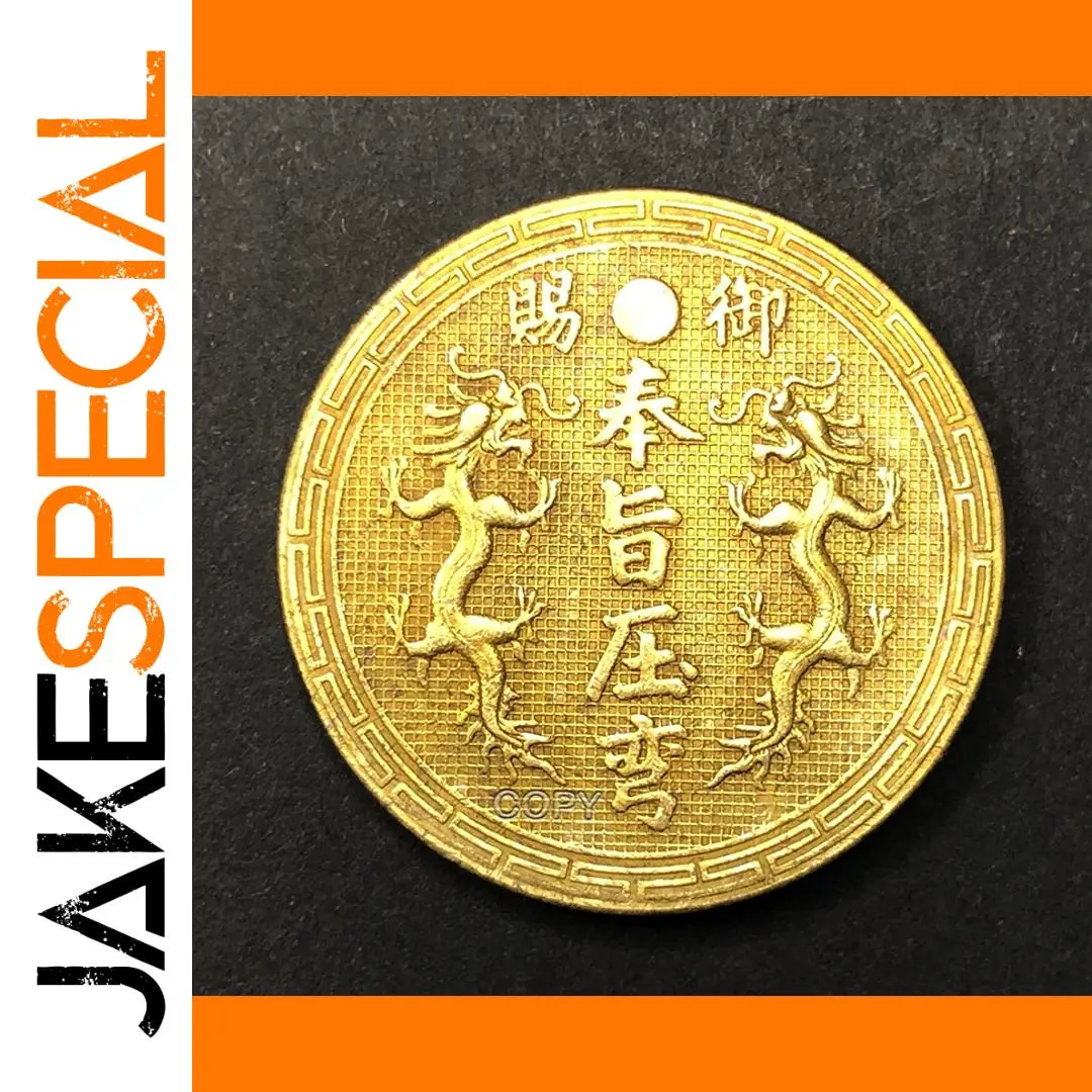 Immerse yourself in the beauty and craftsmanship of this beautifully crafted brass collectible medal. Designed with a vintage aesthetic, it features a harmonious blend of traditional Chinese motifs and intricate carving. The double dragon design, facing each other with flowing manes and elongated bodies, symbolizes strength and harmony. Between them, traditional Chinese characters add an authentic touch. The polished, shiny surface is highlighted by a rich gold hue, making it perfect for display or collection. Its 28mm diameter and detailed decorative border evoke nostalgia and patriotism, creating an antique look that complements any space or collection. This medal is a timeless piece that embodies cultural artistry and historical charm, making it a meaningful addition to your decor or memorabilia collection.