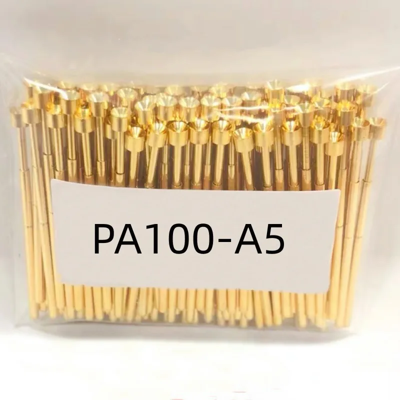Discover the unmatched reliability of this this PA100-A5 Spring Test Probe set, perfect for electronic circuit testing. Crafted with a sleek, metallic gold finish, these probes boast a minimalist yet professional design. Their slender, straight bodies with conical tips ensure accurate and durable contact testing on circuit boards. The copper tips are coated with shimmering gold, enhancing conductivity and longevity. Ideal for technicians or enthusiasts, these probes provide a precise fit, making your testing tasks straightforward and efficient. Whether you're troubleshooting, repairing, or designing electronic circuits, these probes bring confidence to every test. With a length of 33.35mm, they are compact yet highly functional, elevating your testing setup with quality craftsmanship and dependable performance.