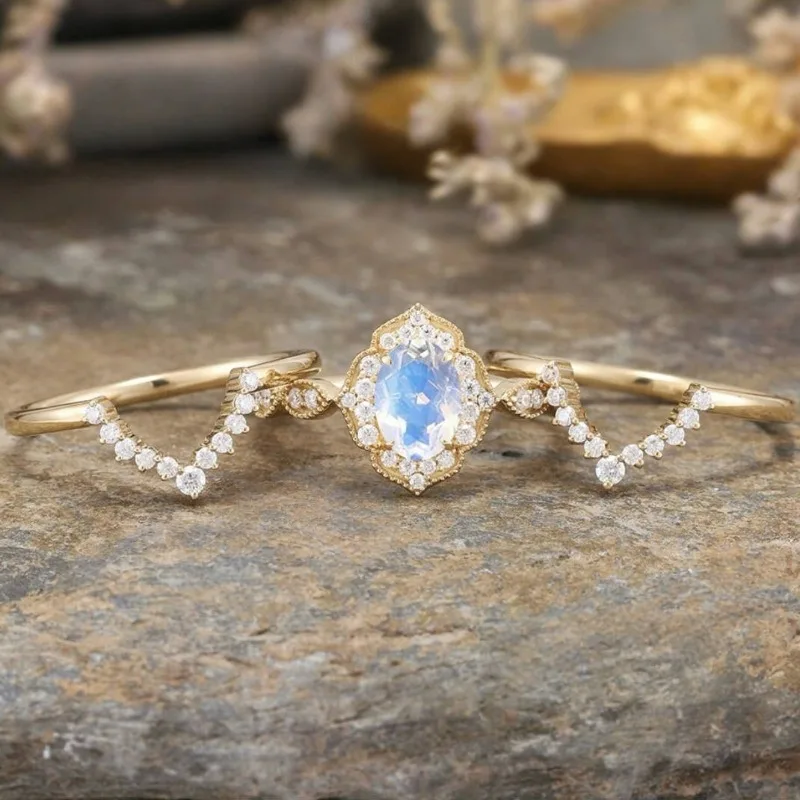 - Design incorporates a geometric pattern along the band with additional small clusters of white stones, creating a trendy, modern, and dazzling appearance.