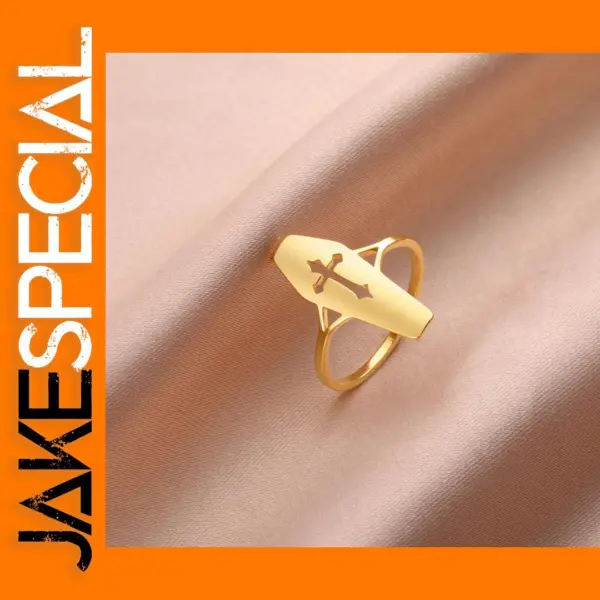 Elevate your style with the Gold Color Cross Coffin Ring, a striking piece that combines gothic aesthetics with personal significance. Crafted from high-quality stainless steel, this durable ring features a unique cross coffin design, making it a standout accessory for any outfit or occasion. Available in stunning gold, steel, and black finishes, it is also an ideal gift for anniversaries, weddings, or special moments. Experience a comfortable fit and let this ring express your individuality. Embrace the opportunity to enhance your collection and make a bold fashion statement with this captivating piece today!