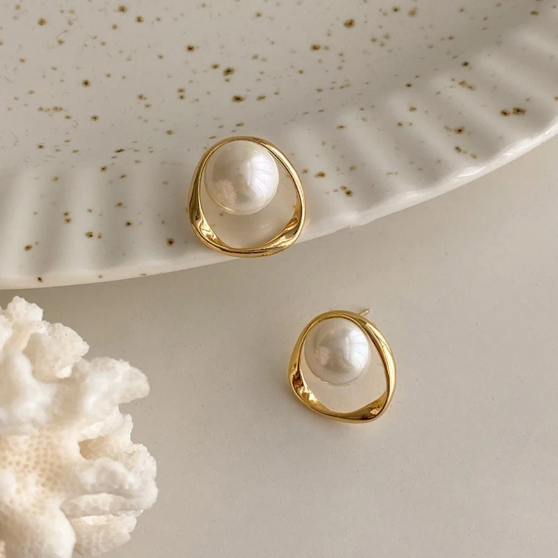 - Irregular, organic gold-tone frames surrounding the pearls give a unique, handcrafted feel with a subtle vintage charm.