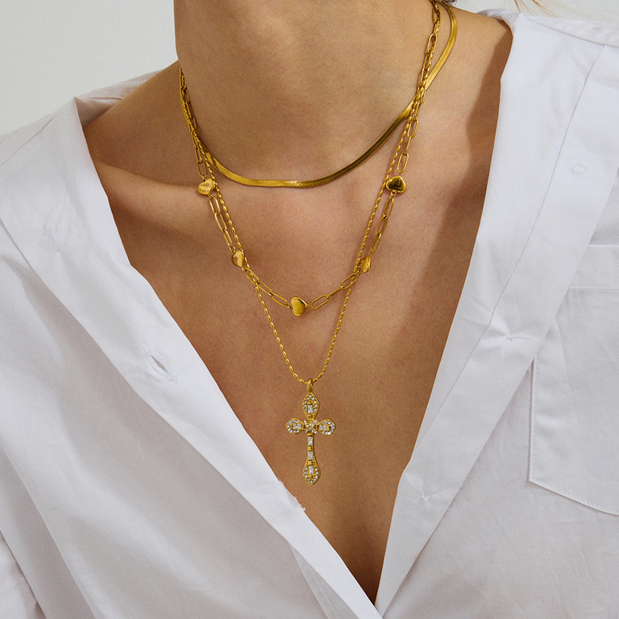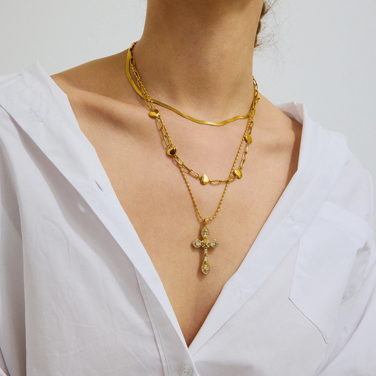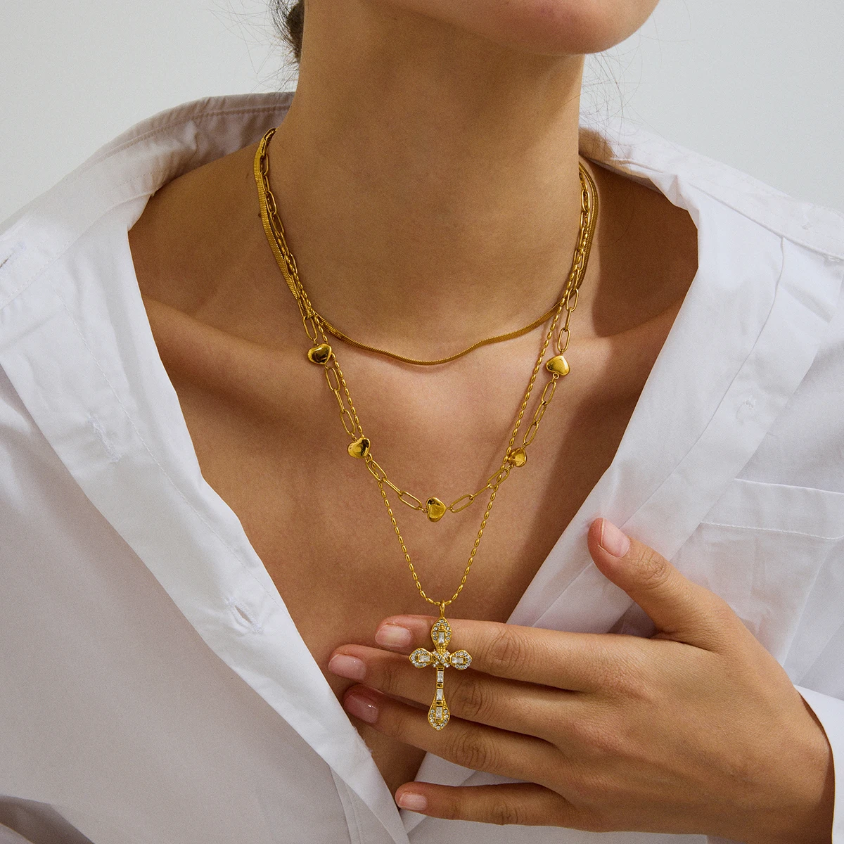 Elevate your style with this exquisite women's pendant necklace, featuring a beautifully crafted cross-shaped charm adorned with colorful zircon stones. Made from durable stainless steel with PVD gold coating, it boasts a long-lasting, fade-resistant, and scratch-resistant finish, ensuring it remains radiant and waterproof over time. The lightweight design, weighing only 15 grams, offers comfort while making a bold fashion statement. Its trendy link chain perfectly complements the vibrant pendant, making it ideal for parties or special occasions. Whether you prefer a subtle touch of color or a lively, multi-hued look, this necklace adds a luxurious, modern edge to your everyday wardrobe or evening attire. Feel confident knowing you’re wearing a piece crafted to last and impress.