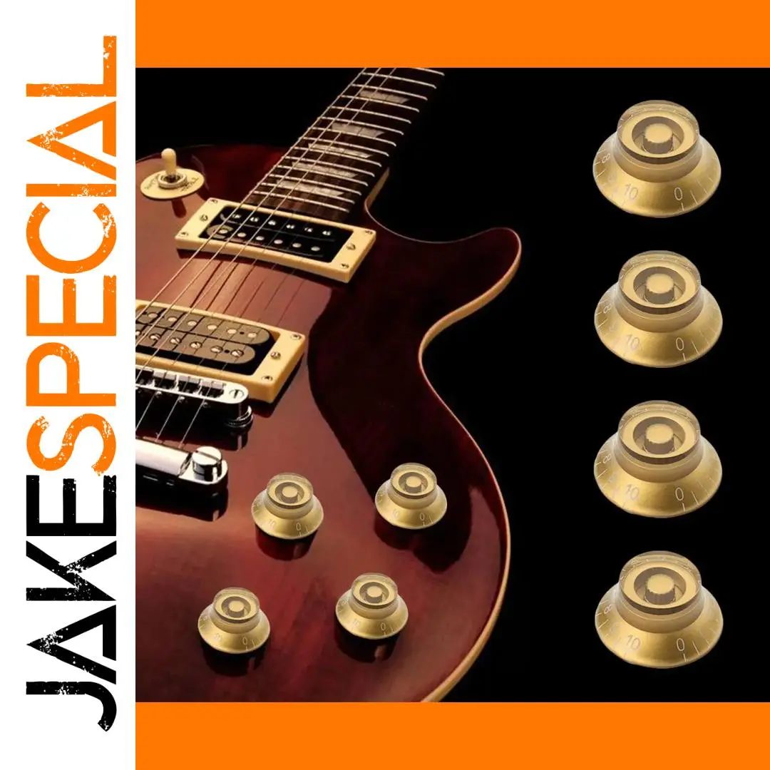 Enhance your guitar’s aesthetic with this set of four high-quality plastic control knobs, featuring a sleek, shiny gold finish and white numbering for easy visibility. Each hat-shaped knob measures approximately 26mm in diameter, 12.5mm in height, with a 6mm central hole for a secure fit on Les Paul or LP style guitars. Designed as replacements for worn or outdated knobs, they provide a polished, sophisticated look while ensuring precise volume or tone adjustments. Perfect for customizing your guitar’s control panel, these durable and visually appealing knobs are an ideal upgrade for any serious musician seeking both style and functionality.