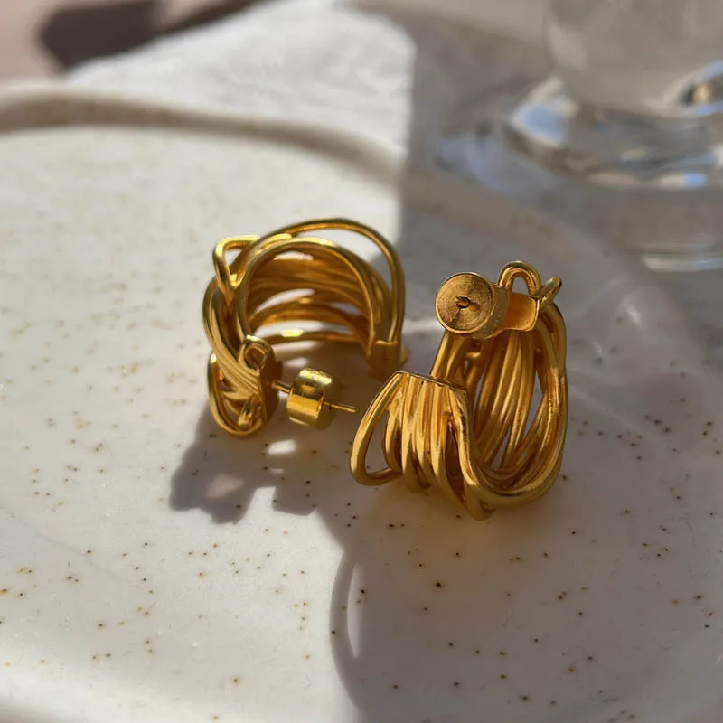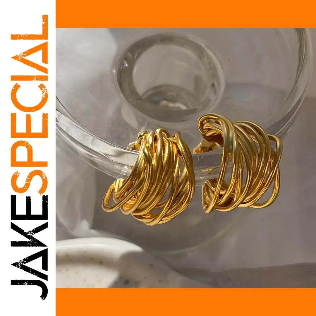 Add these modern, multilayer distortion interweave earrings to your stylish arsenal today. With their bold design and versatile appeal, they are perfect for enhancing both casual and sophisticated looks. Experience how the shiny gold-tone finish and intricate layered design instantly elevate your outfit. Whether you’re dressing up for a special event or adding an edgy touch to your everyday look, these earrings are a trusted and fashionable choice. Don’t miss the opportunity to turn heads and express your unique style—order yours now and accessorize with confidence!