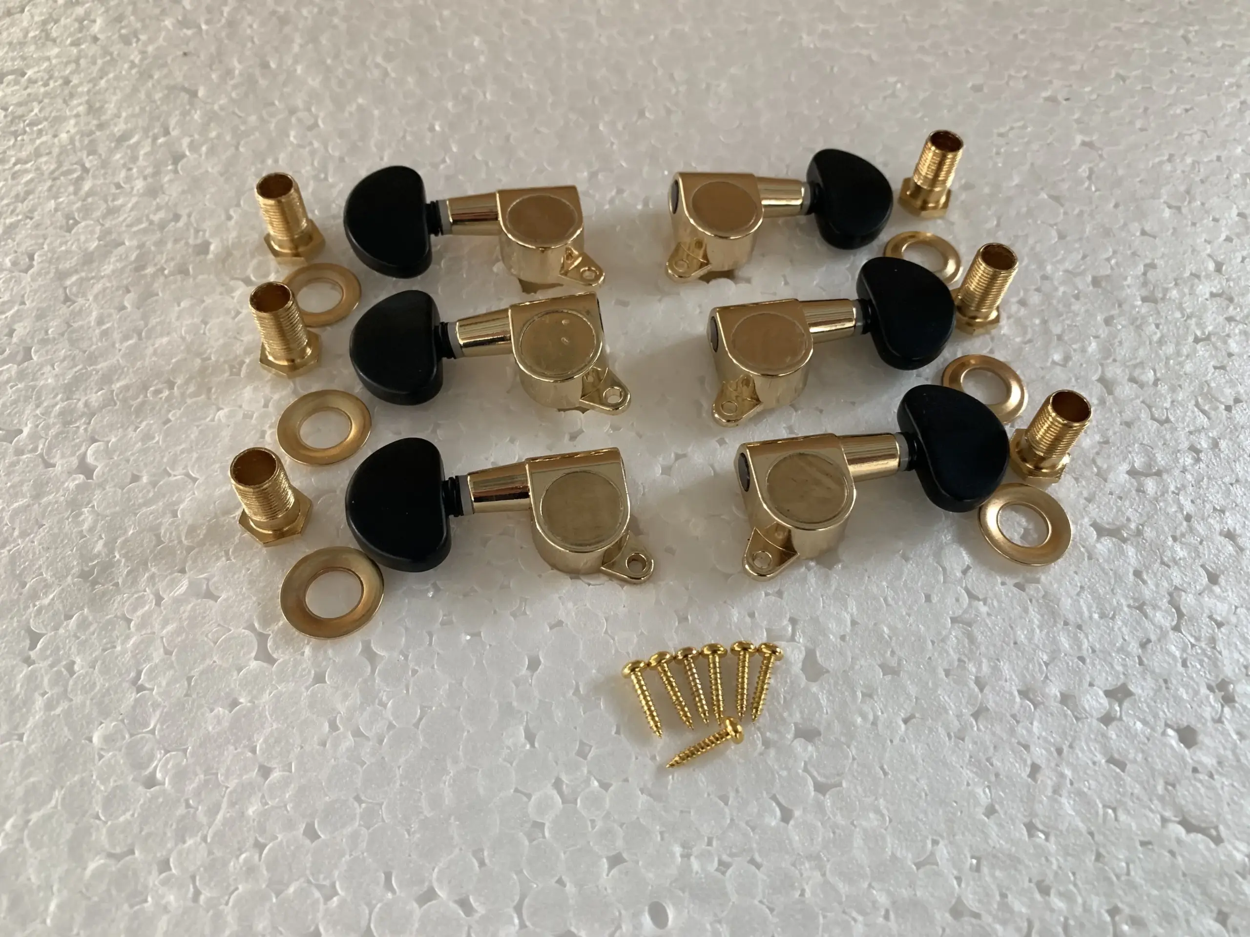 - The set includes six tuners—three right-handed (3R) and three left-handed (3L)—to suit various guitar configurations, all with a luxurious gold finish for an elegant appearance.