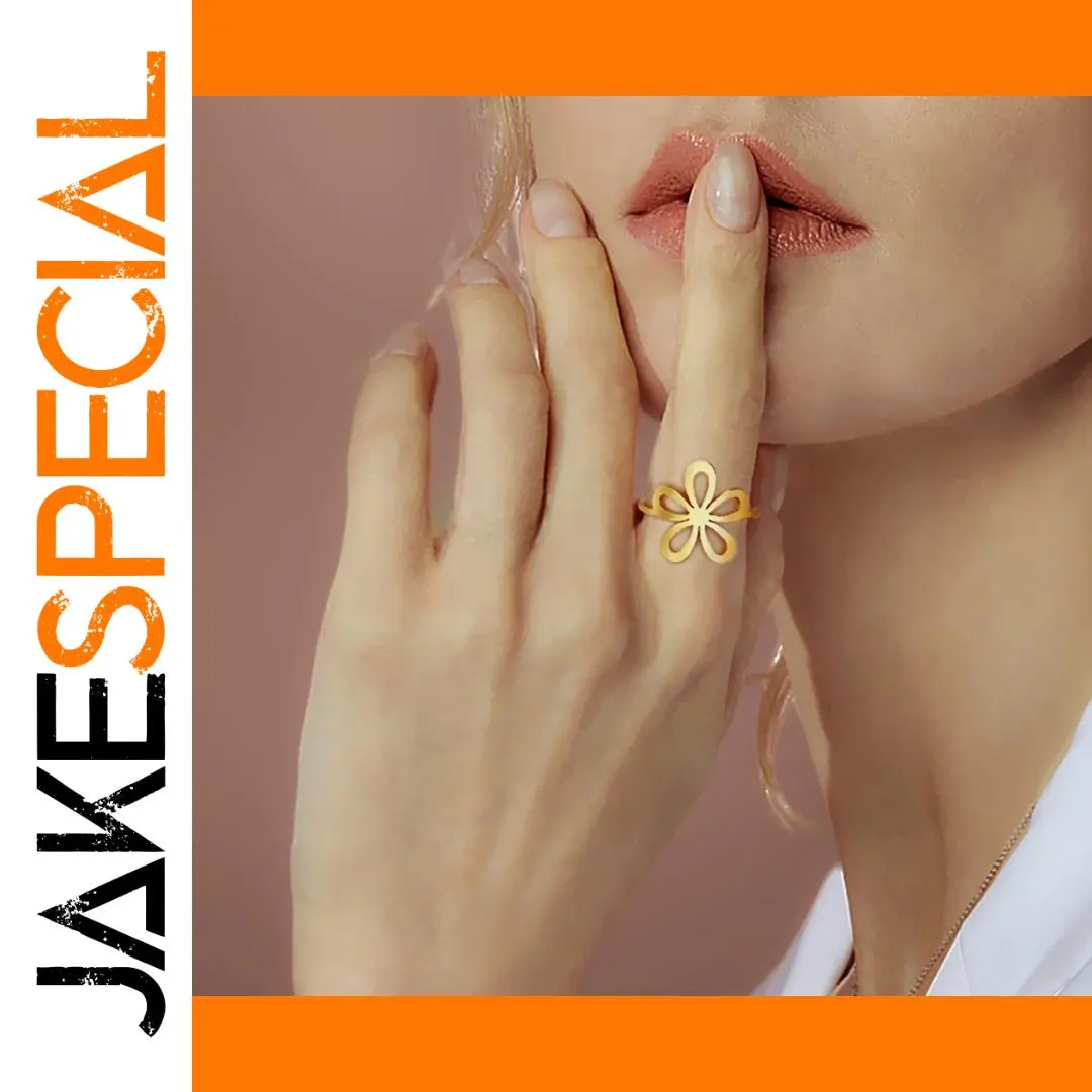 Experience the beauty of this stunning gold-color stainless steel flower ring, designed to bring a touch of elegance to your everyday style. Its delicate, openwork floral pattern features petal-like loops arranged symmetrically, creating a refined flower shape. The thin, polished band boasts a luxurious gold finish, exuding sophistication and charm. Perfectly crafted for daily wear, this trendy accessory enhances any outfit with its feminine and contemporary appeal. Whether you're celebrating a special occasion or adding a subtle sparkle to your casual look, this ring offers an easy way to elevate your style. The durable stainless steel construction ensures longevity, resisting rust, fading, and deformation while being hypoallergenic for all-day comfort.