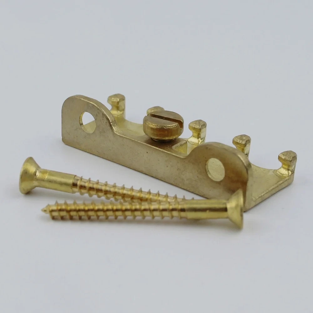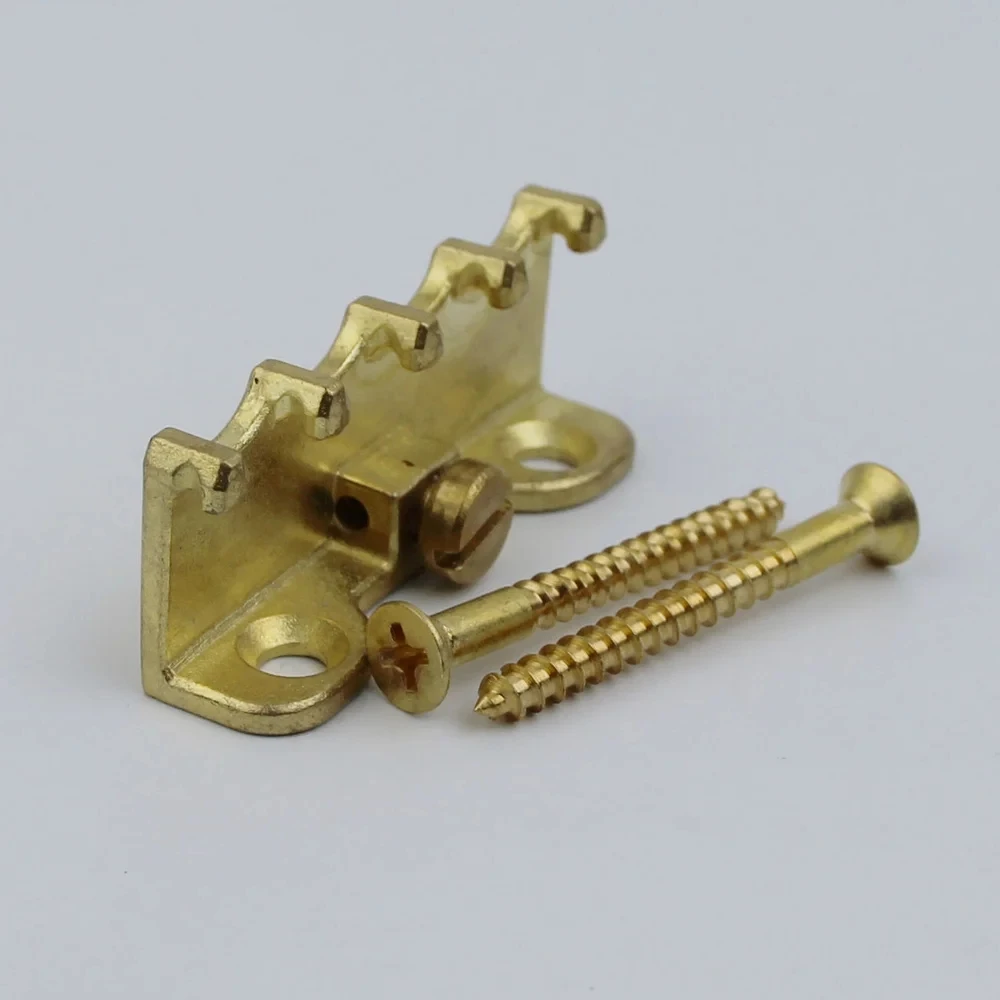 Experience the perfect blend of style and durability with this this electric guitar tremolo bridge spring claw. Crafted from high-quality solid brass, this component boasts a sleek, glossy gold finish, adding a touch of elegance to your guitar setup. Its flat, rectangular shape with smooth, rounded edges underscores a refined craftsmanship, ensuring long-lasting performance. The precision-machined surface reflects a uniform sheen, emphasizing both aesthetics and functionality. Designed for easy installation, this tremolo bridge claw offers a sturdy anchor point for tremolo springs, supporting smooth pitch modulation. Ideal for guitar enthusiasts seeking to upgrade their instrument’s look and performance, this piece seamlessly combines luxurious appeal with robust construction. Transform your guitar’s tremolo system with this eye-catching, reliable part.