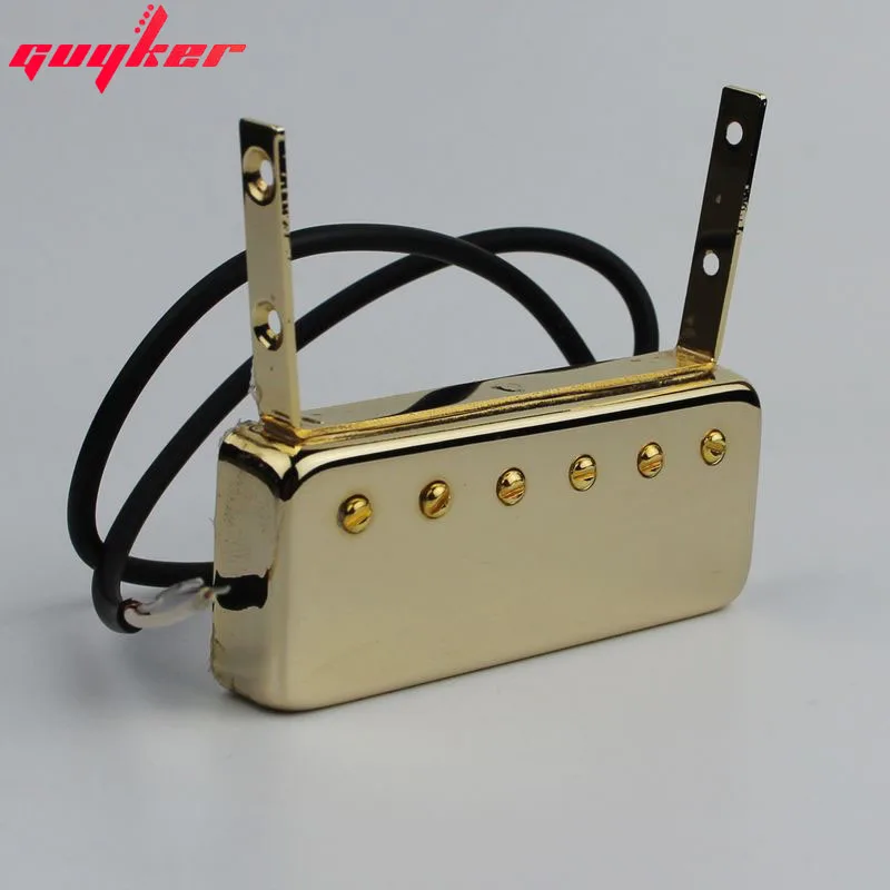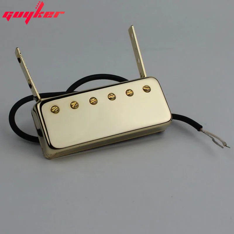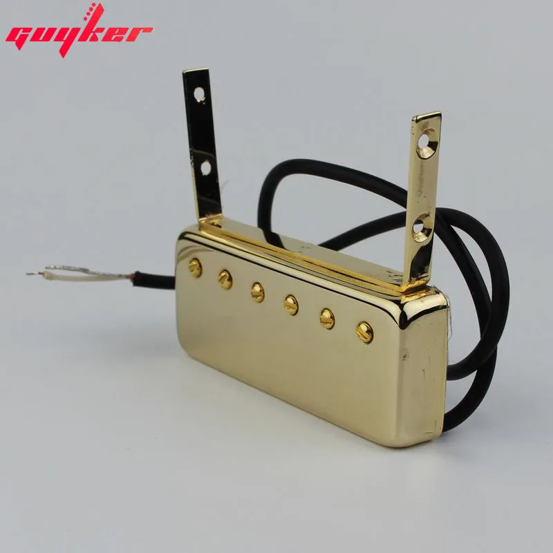 Experience the allure of this high-quality gold-finished guitar neck pickup, crafted specifically for floating jazz and Johnny Smith-style electric guitars. Its sleek, rectangular metal casing with a polished, reflective surface offers a premium aesthetic that complements any sophisticated guitar setup. The six perfectly spaced, gold-plated round-head screws secure the cover elegantly, while the two slender, matte-finished mounting brackets provide durable attachment points. A flexible black wire emerges from the side, ready for easy installation, ensuring reliable electrical connection. This pickup combines refined design with robust metal materials, delivering excellent sound clarity and lasting durability—perfect for enhancing your jazz style or bringing new life to your electric guitar. Crafted for enthusiasts who value both form and function in their musical instrument upgrades.