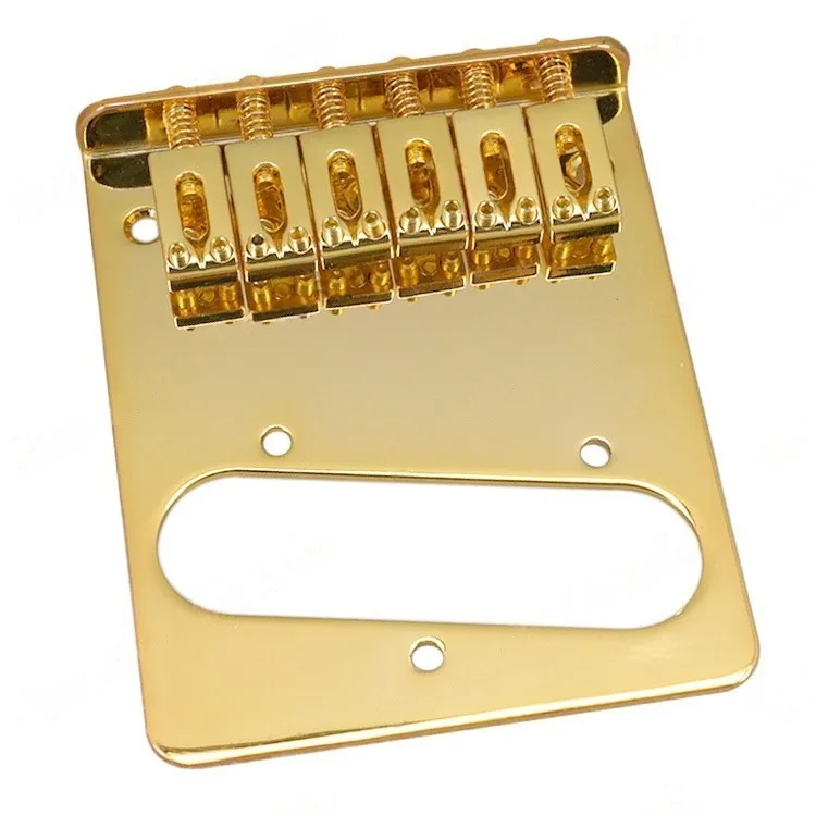 Imagine elevating your guitar’s performance and style with this stunning gold-colored fixed-type electric guitar bridge. Crafted from durable metal, it features a sleek, polished finish that adds a touch of sophistication to your instrument. The rectangular base plate with rounded edges offers a smooth silhouette, while the six precisely aligned saddles with open-hole design ensure effortless string threading from the rear. Each saddle is secured with fine-tuning screws and springs, allowing you to adjust height and intonation with ease. Designed for seamless attachment via three mounting holes, this bridge provides excellent stability and durability. Its sophisticated look and precise engineering make it an ideal upgrade for any guitar enthusiast aiming for both aesthetics and functionality.