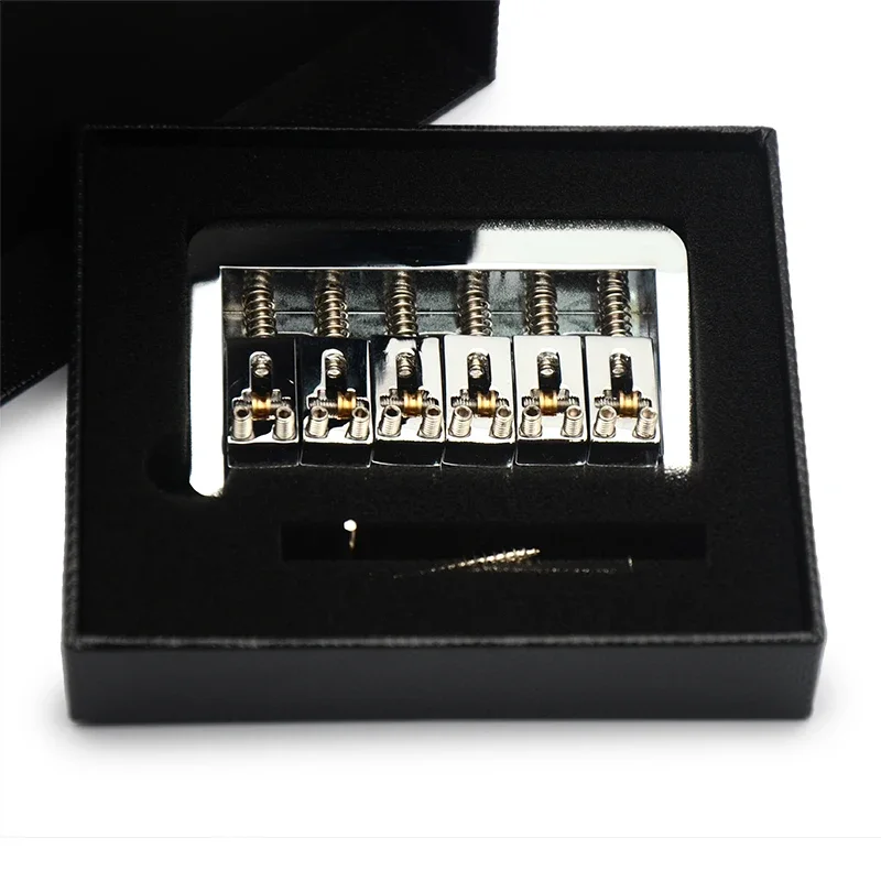 Enhance your guitar’s tone and stability with this precision-engineered fixed bridge measuring 74x45mm, compatible with 6-string guitars and a string spacing of 10.6mm. Crafted from durable metal with a solid base plate and featuring brass roller saddles, it maximizes sustain and tonal clarity. The string through body design ensures firm downward pressure for enhanced stability and resonance. Available in sleek black, luxurious gold, and reflective chrome finishes, this high-quality bridge includes three mounting screws and a wrench for easy installation. Its minimalist design combines aesthetic appeal with professional performance, making it a perfect upgrade for serious players seeking enhanced sound quality and reliability.