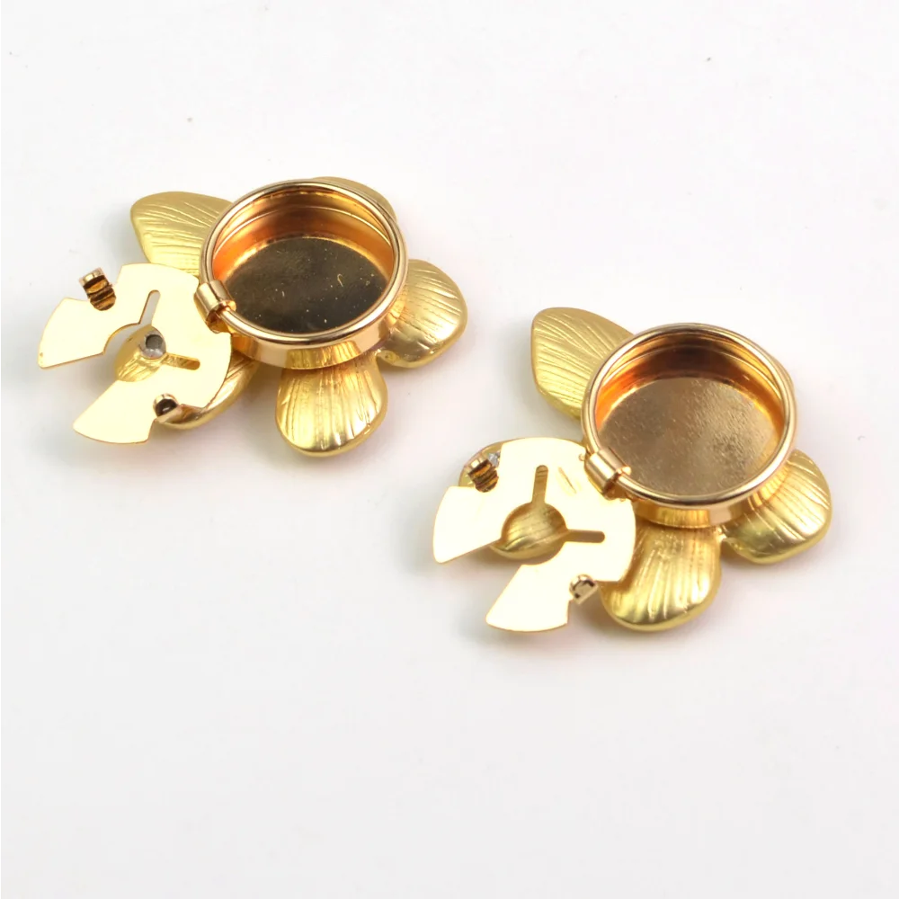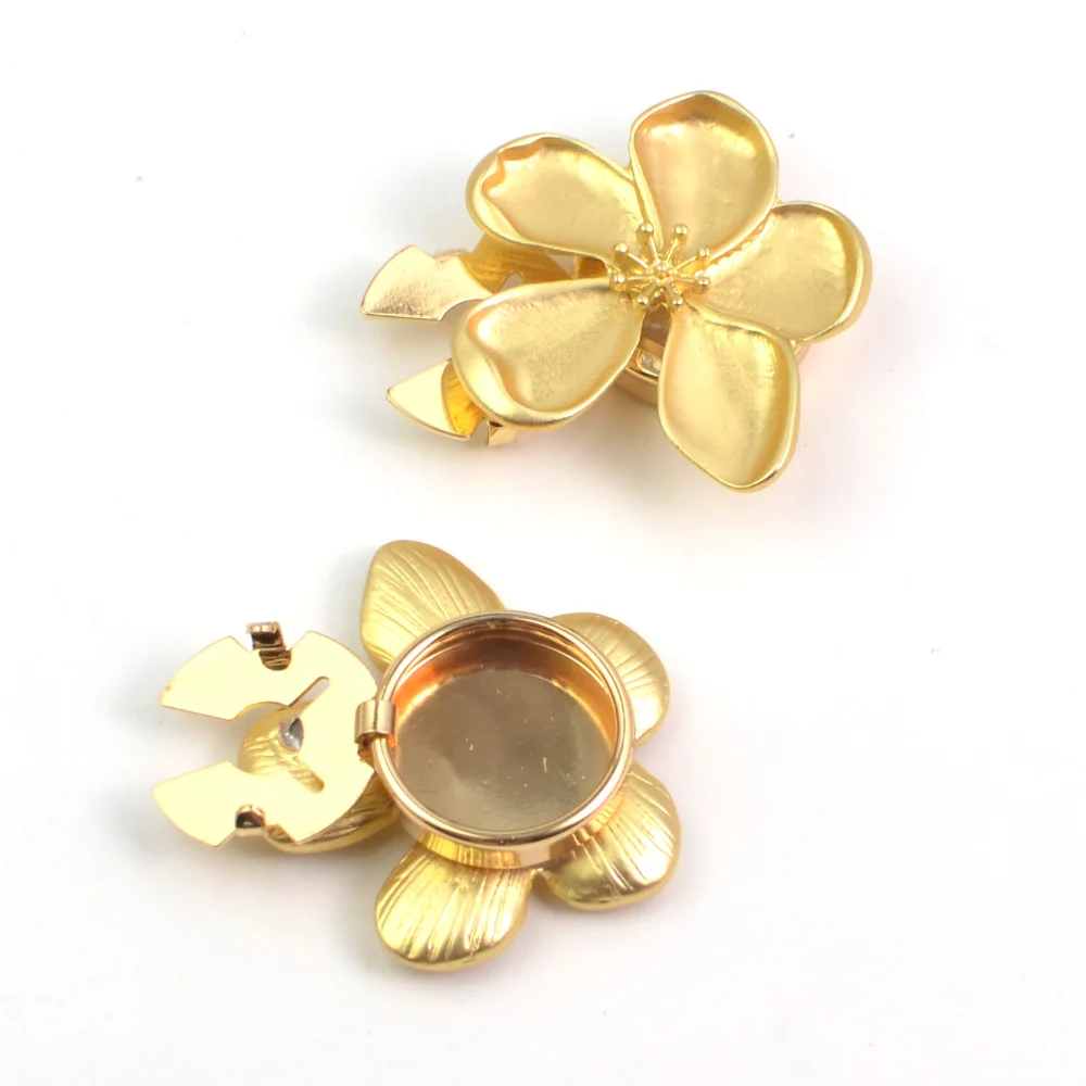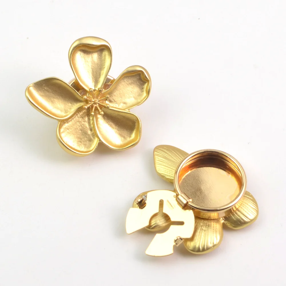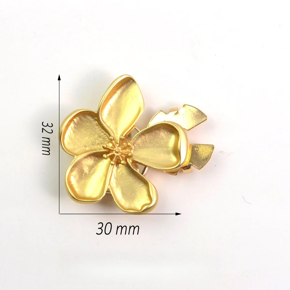 Elevate your style with these unisex alloy cufflinks featuring a stunning three-dimensional floral design in a luxurious gold hue. Each cufflink showcases five rounded, slightly curved petals with a polished surface that subtly reflects light, creating an elegant, shiny appearance. The petal-shaped cover complements the realistic flower motif, available in a versatile retro, punk, gothic, or minimalist style, perfect for decorating jackets, backpacks, hats, or DIY outfits. Measuring precisely as shown, with size deviations of 1-3mm, these timeless accessories embody refined craftsmanship and can add a sophisticated touch to any wardrobe, making them a perfect choice for expressing unique personal style.