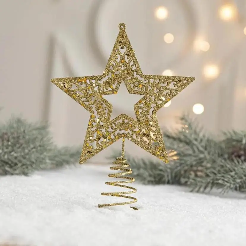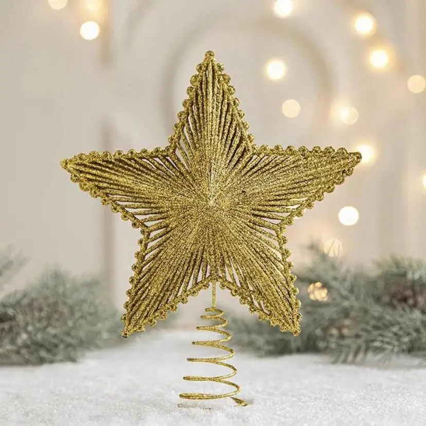 Imagine adding a touch of holiday glamour to your décor with this stunning gold glitter Christmas star ornament. Its eye-catching design features a textured, ridged surface on a five-pointed star, radiating elegance and warmth. The shimmering gold glitter coating sparkles beautifully, creating a festive atmosphere whether displayed indoors or outdoors. Its durable iron structure ensures it remains a charming centerpiece on your Christmas tree, mantel, or outdoor holiday setup. Easy to hang using its small loop at the top, this ornament complements various decorating styles and themes. As you prepare to celebrate, this glittering star adds a sophisticated sparkle, making your holiday environment feel more joyful and inviting.
