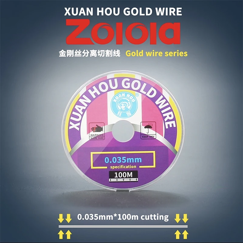 Experience the precision and reliability of this gold cutting wire designed specifically for mobile phone LCD screen separation. With vibrant color-coded labels and sleek transparent casings, each spool showcases a professional-grade tool crafted for delicate electronic repairs. Whether you are a seasoned technician or a dedicated hobbyist, visualizing your next successful repair becomes easier with this high-quality wire. Its various diameters—from 0.028mm to 0.08mm—and lengths up to 150 meters ensure you find the perfect fit for your specific needs. The high-hardness, gold properties, and precise manufacturing make this wire an essential asset for achieving clean and accurate cuts without damaging sensitive components. Trust in this product to enhance your repair process with finesse and efficiency.