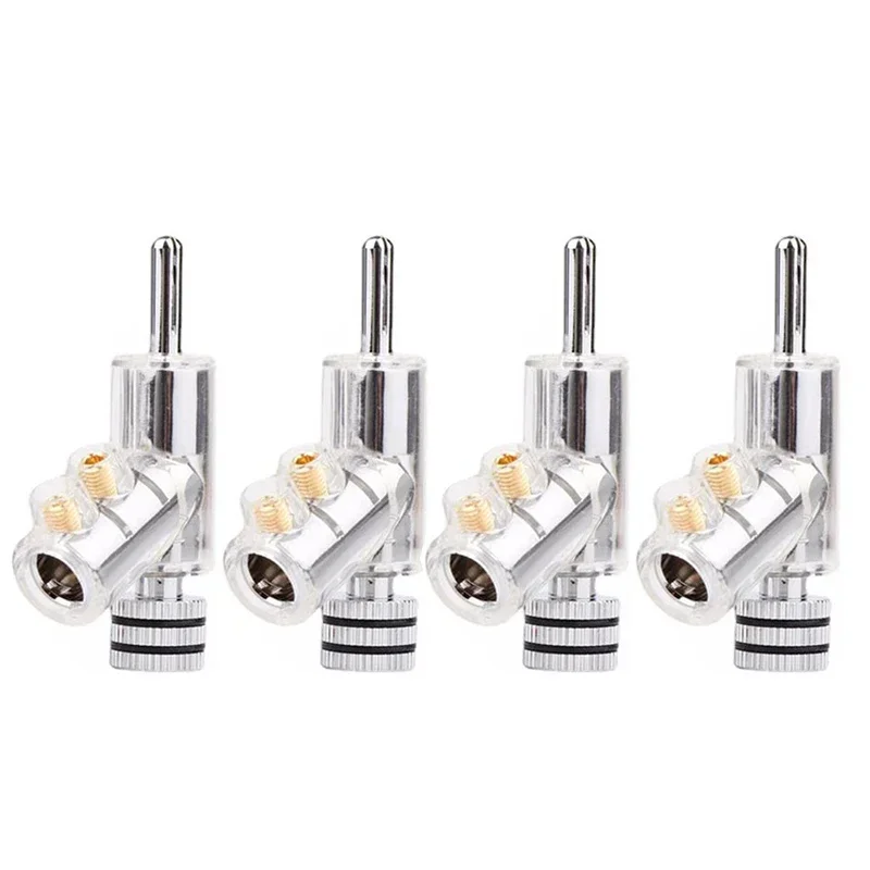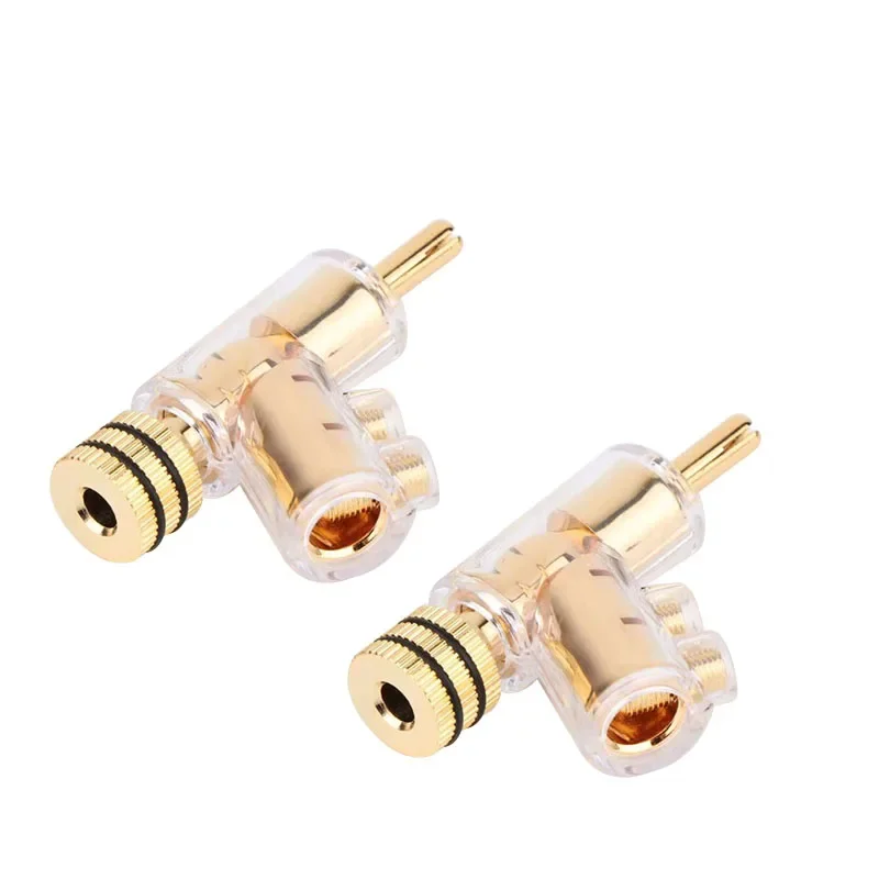 Experience the perfect blend of style and function with this set of four high-end banana connectors, meticulously plated with 24K gold. Designed for audiophiles and professionals alike, these connectors exude a sleek, polished finish that adds a touch of elegance to your audio setup. Their translucent bodies reveal intricate internal components, showcasing craftsmanship and quality. Slightly angled with a prominent gold-plated metal pin, they ensure optimal contact and secure attachment. The color-coded rings—available in red, black, gold, and silver—help you keep wiring organized and matching polarity effortlessly. Compact and durable, these connectors offer corrosion resistance and reliable performance, elevating your high-fidelity audio experience with every connection.