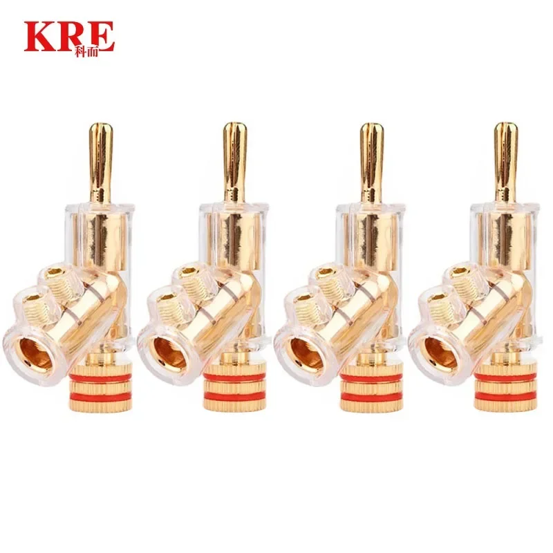 - Set includes four lockable banana connectors with a polished 24K gold plating ensuring excellent conductivity and resistance to corrosion. Designed for high-quality, long-lasting audio connections in professional or home setups.